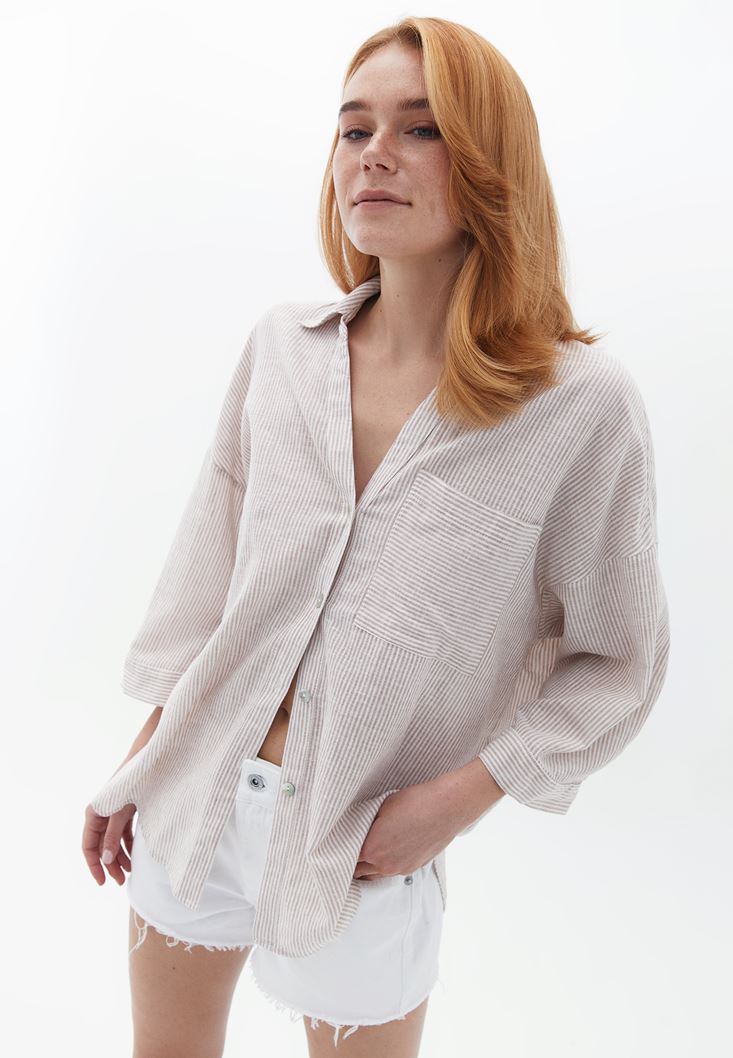 Oxxo Keten Karışımlı Oversize Gömlek 2159094740