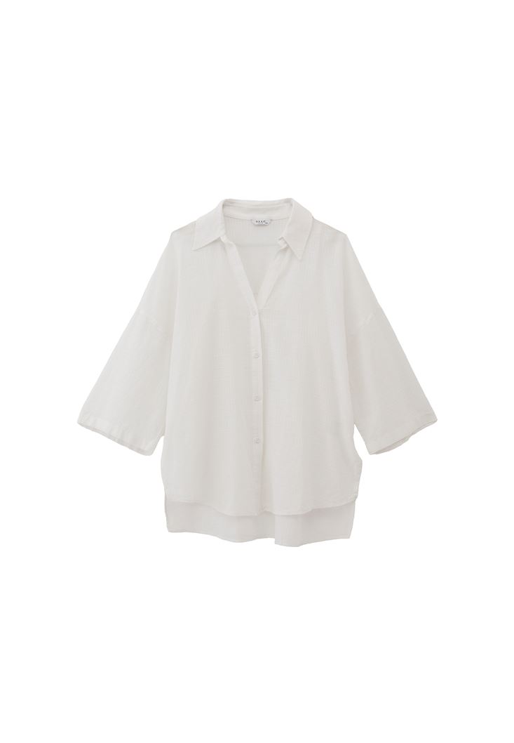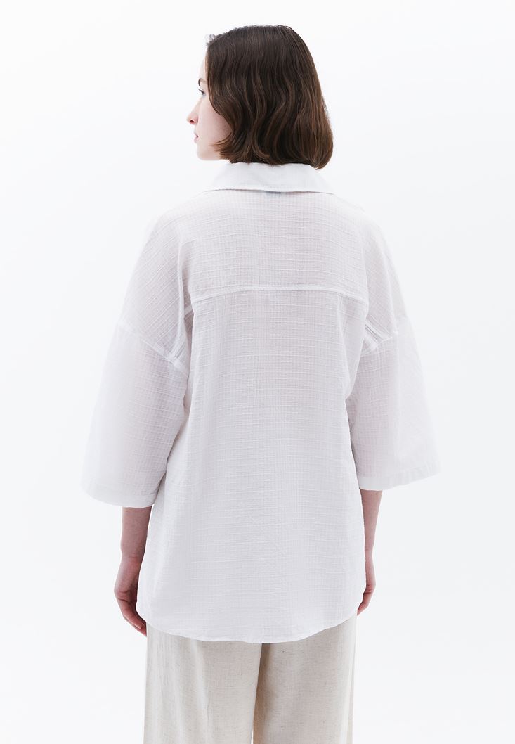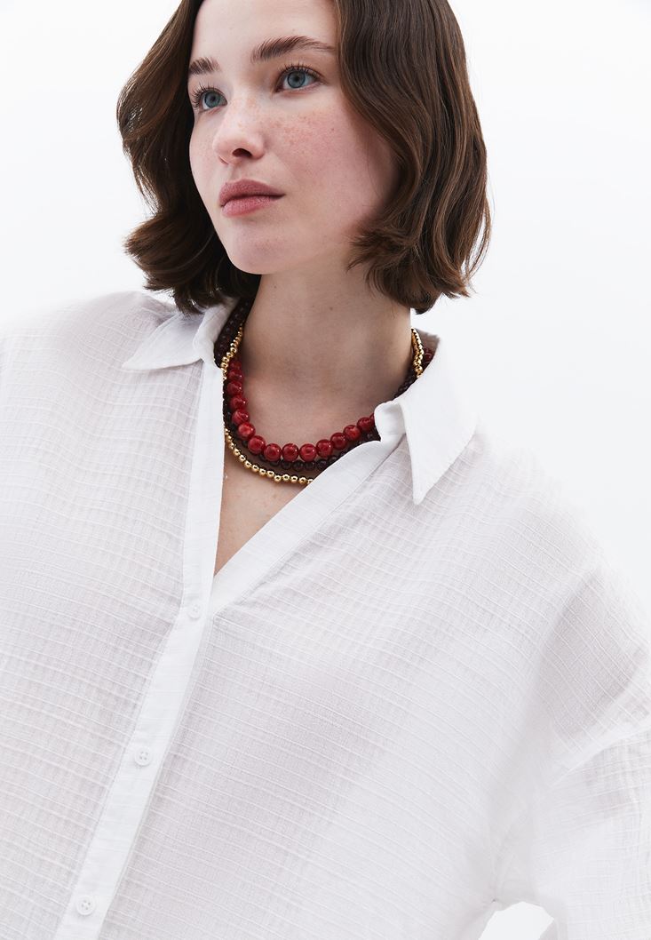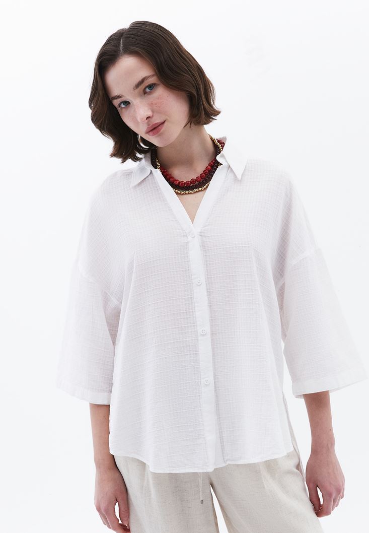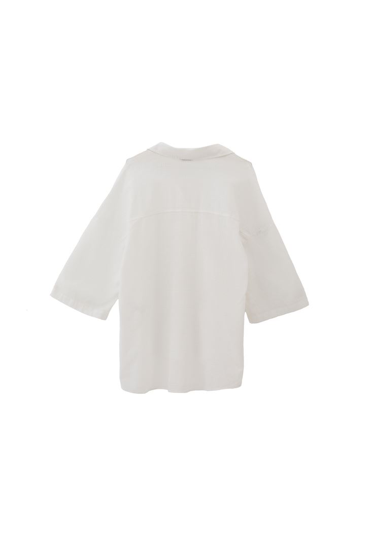 • Bayan Beyaz Keten Karışımlı Oversize Gömlek