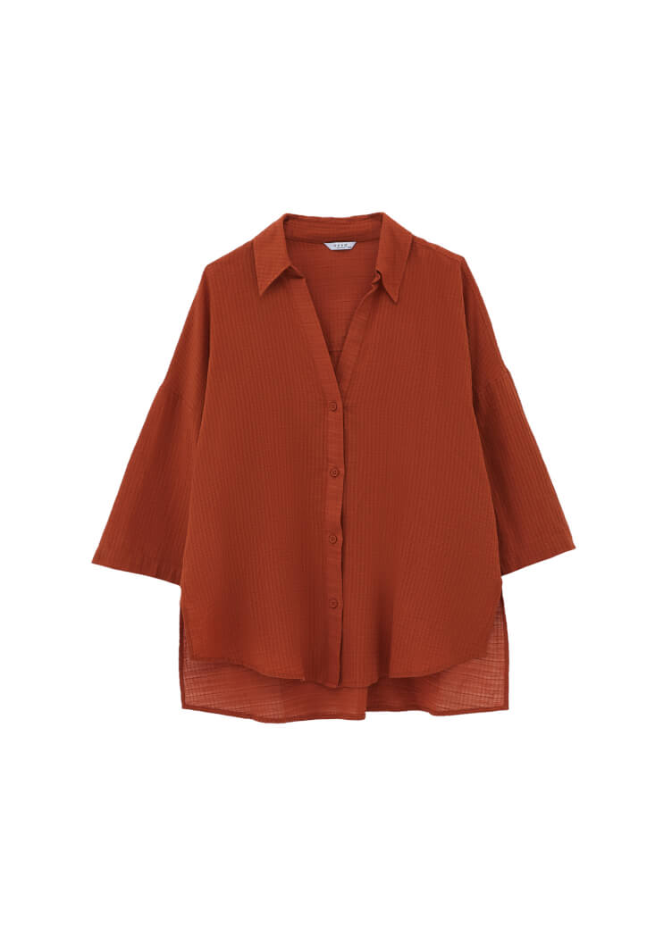 Kiremit Keten Karışımlı Oversize Gömlek