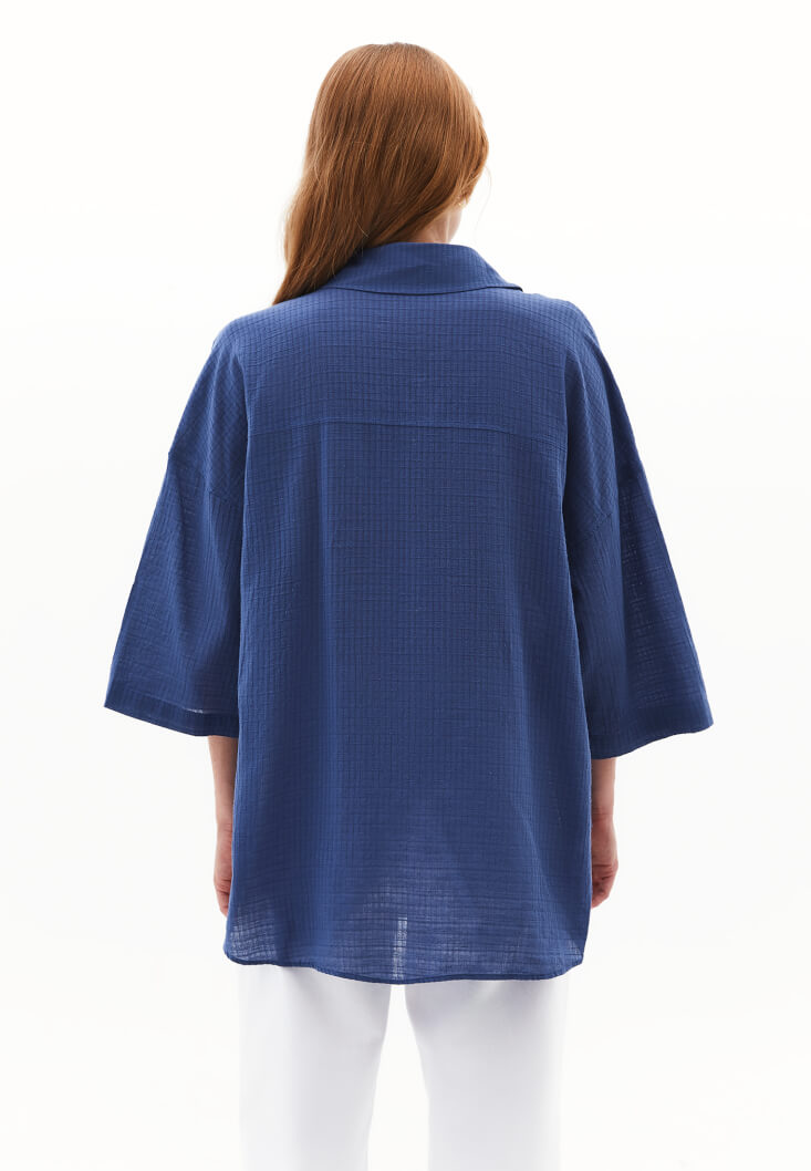Mavi Keten Karışımlı Oversize Gömlek