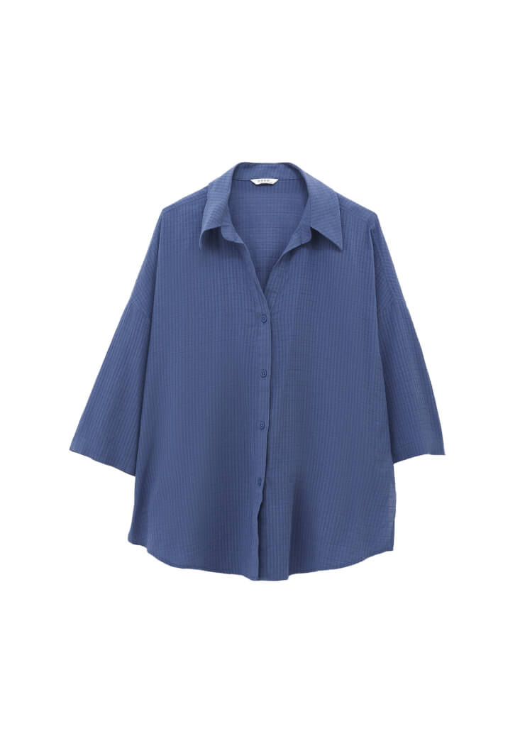 Fit: Oversize / Yaka: Shirt Neck / Kol: 3/4 Sleeve