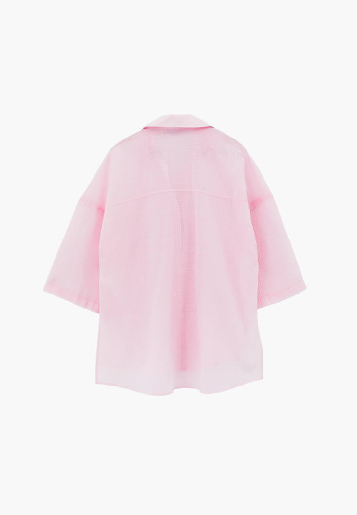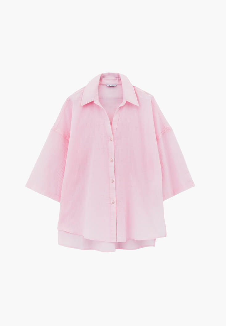 Pembe Keten Karışımlı Oversize Gömlek