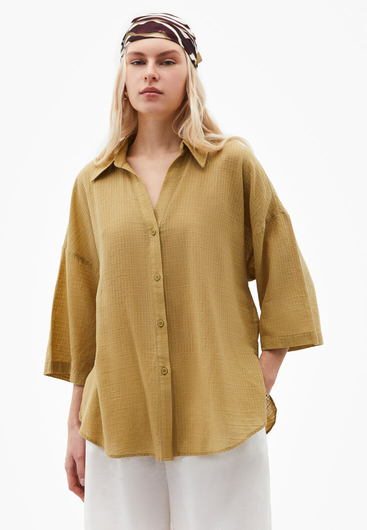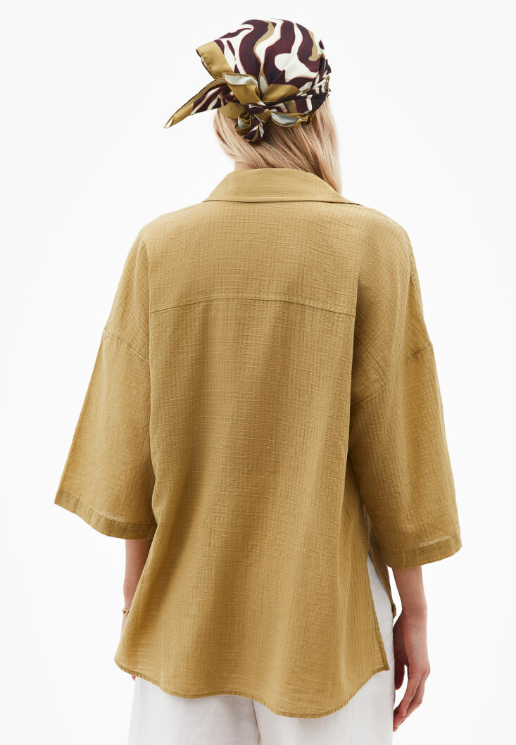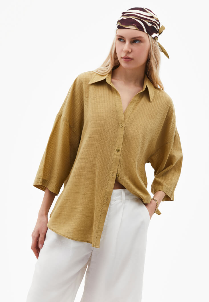 • Bayan Yeşil Keten Karışımlı Oversize Gömlek