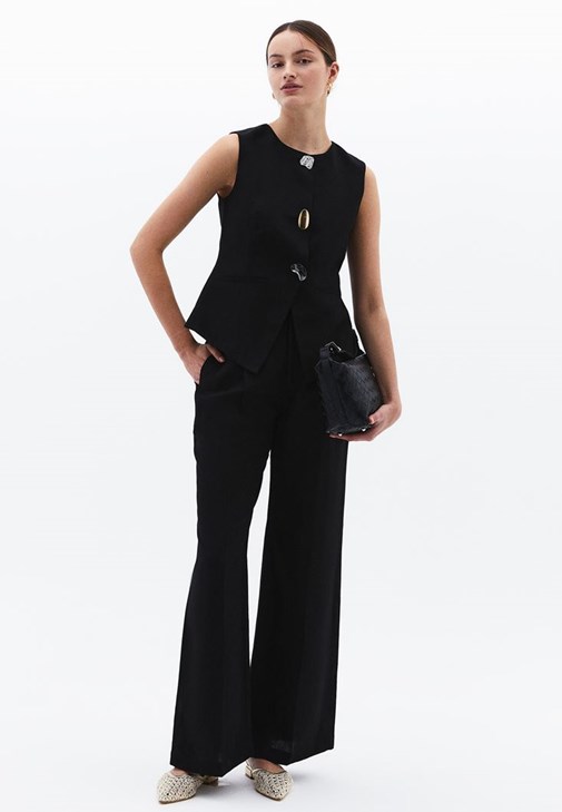 Keten Karışımlı Pantolon ve Yelek Kombini