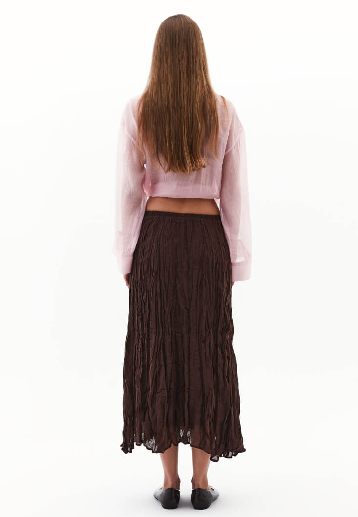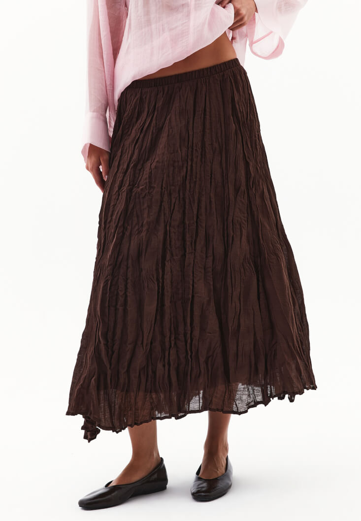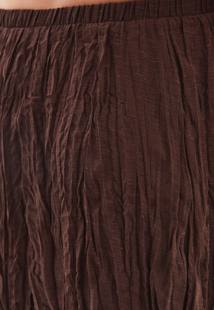 Kahverengi Keten Karışımlı Piliseli Etek ( TENCEL™ )