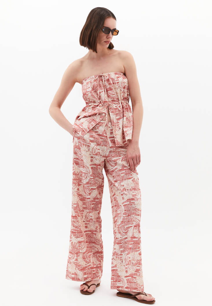• Bayan Çok Renkli Keten Karışımlı Straplez Bluz