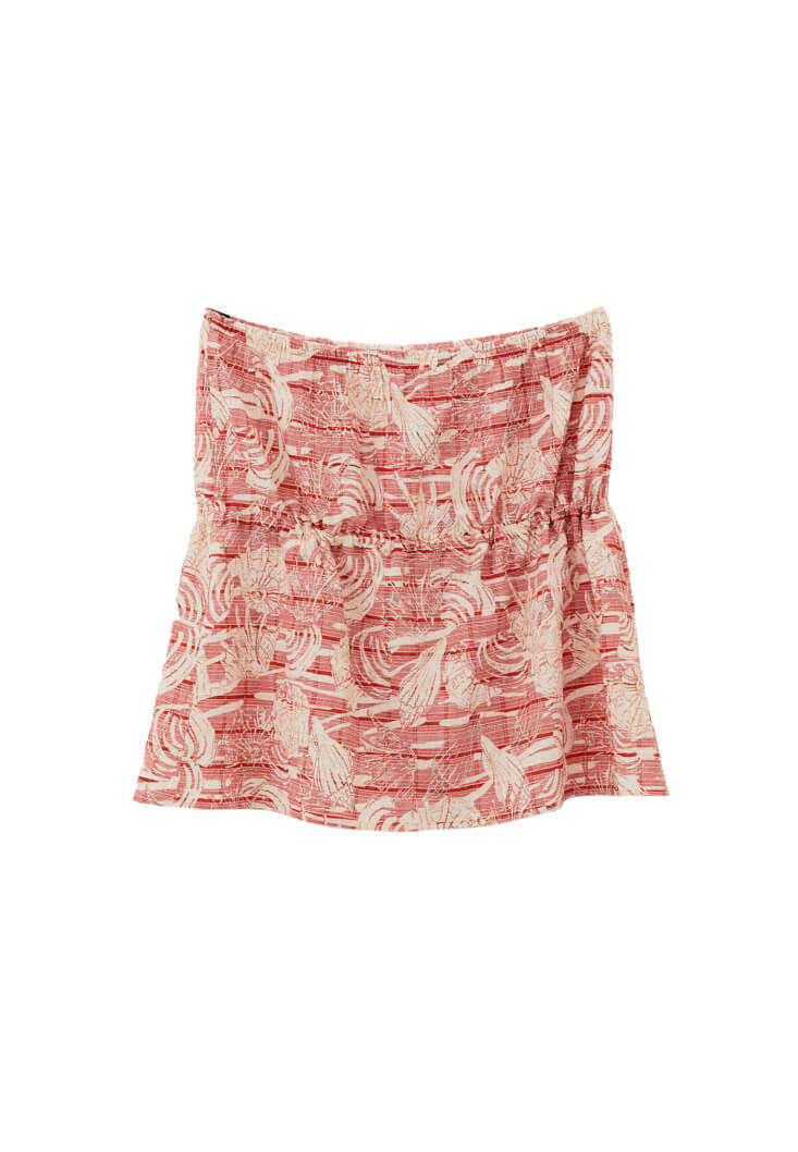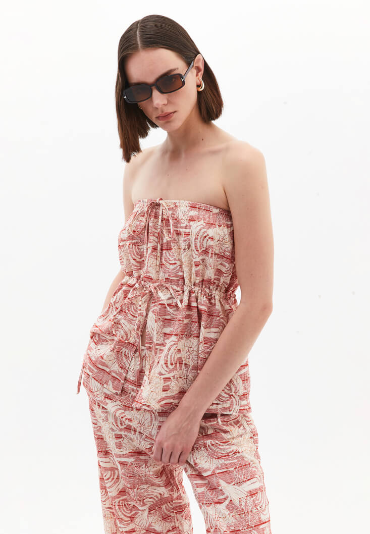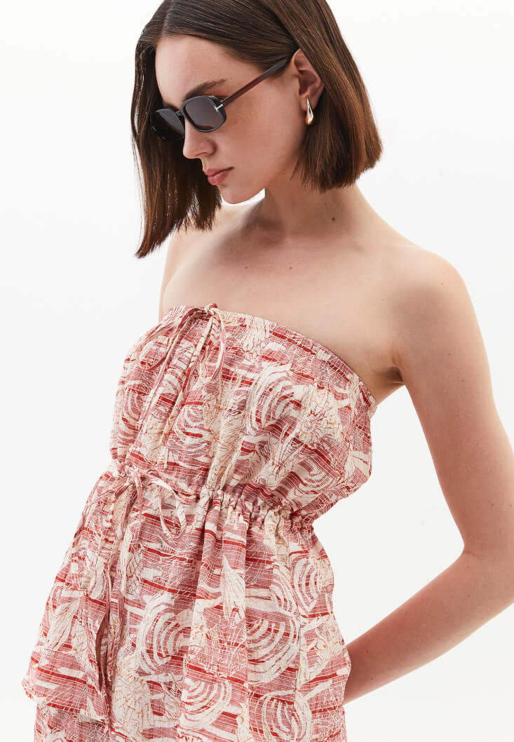 Çok Renkli Keten Karışımlı Straplez Bluz