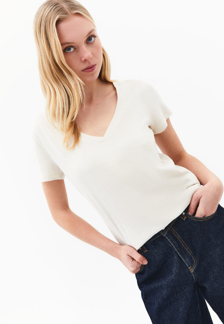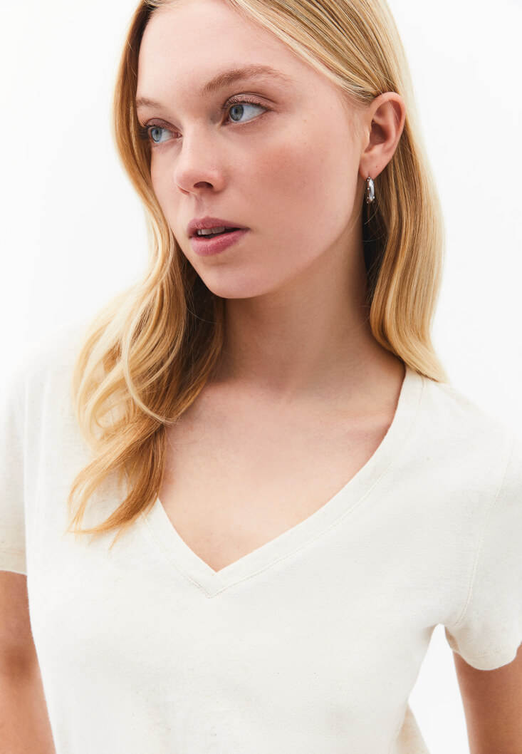 • Bayan Bej Keten Karışımlı Tişört