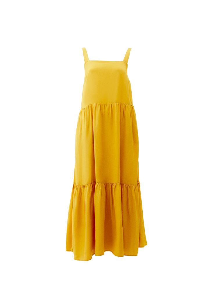 • Bayan Sarı Keten Karışımlı Uzun Elbise