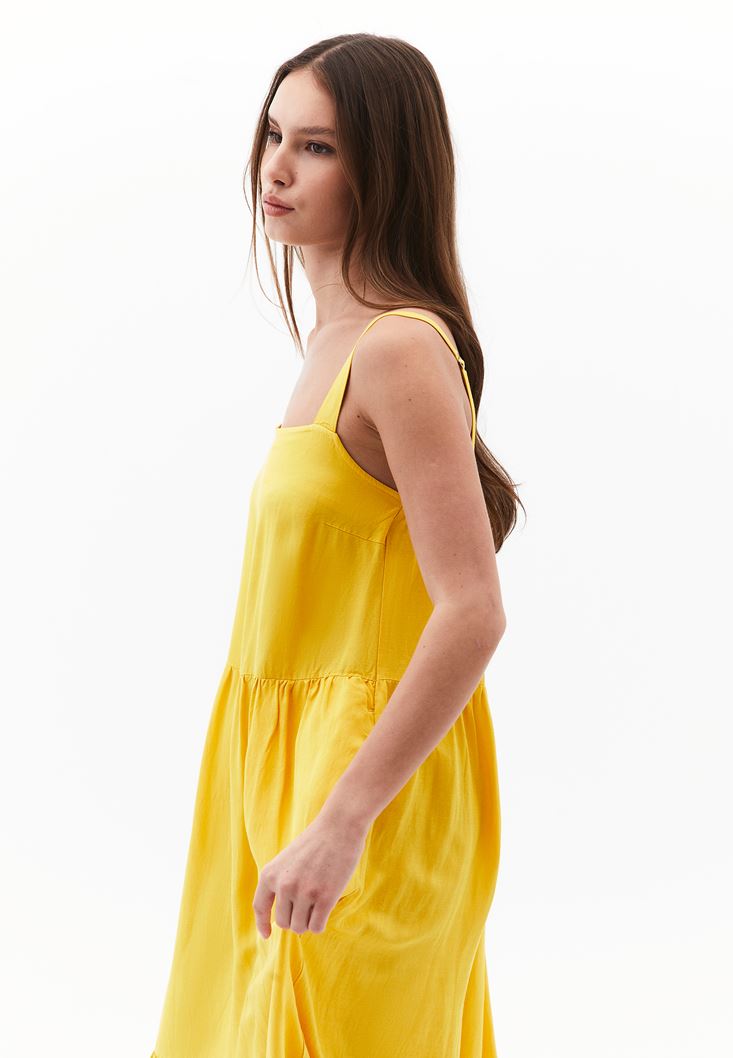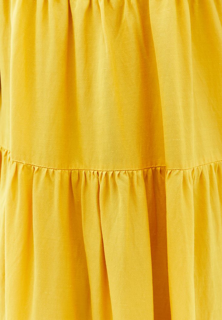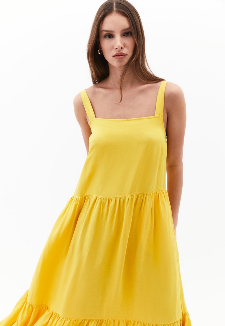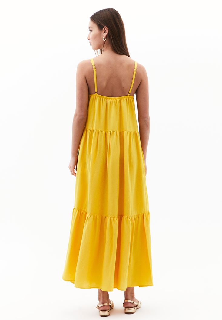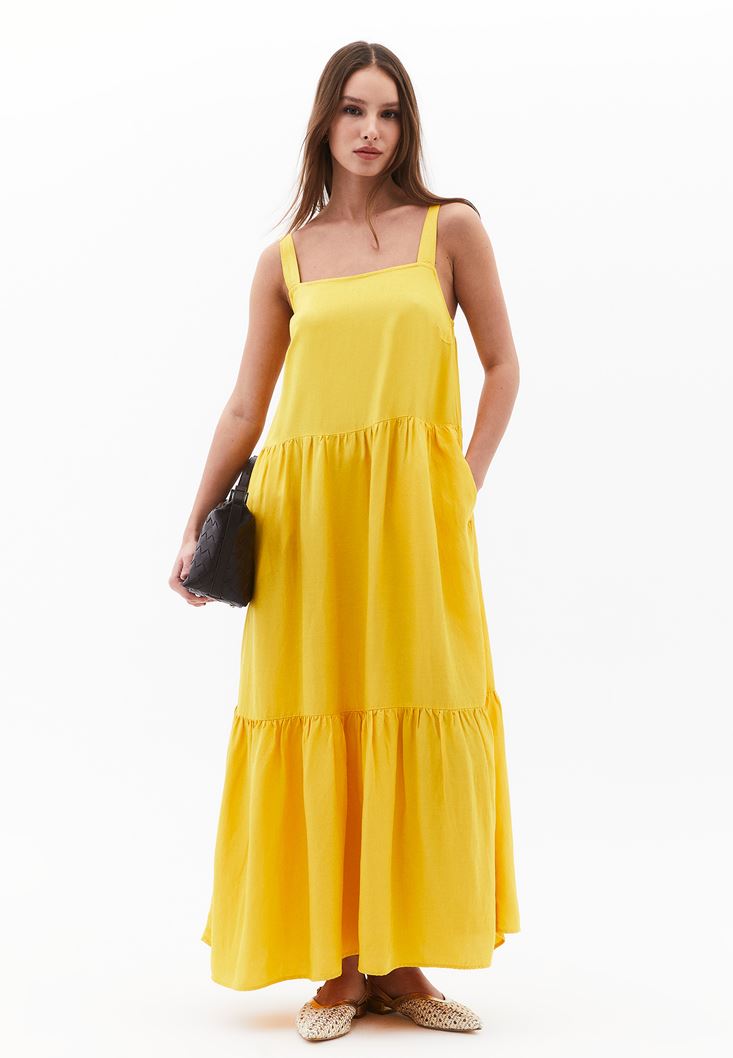 • Bayan Sarı Keten Karışımlı Uzun Elbise