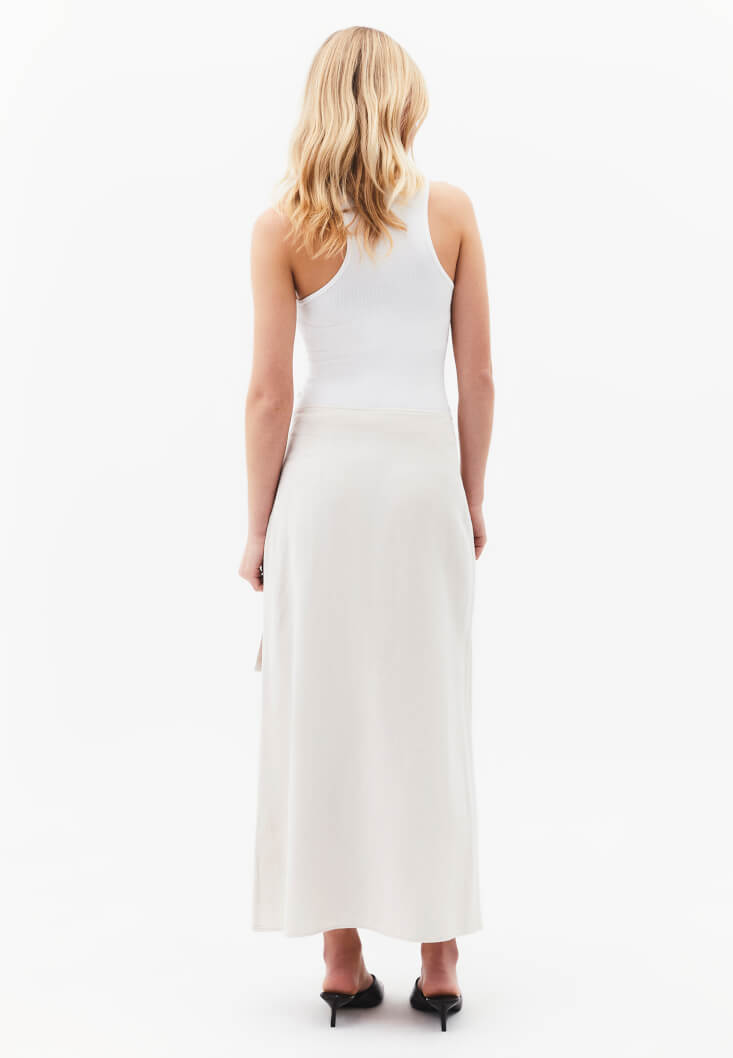 • Bayan Krem Keten Karışımlı Uzun Etek