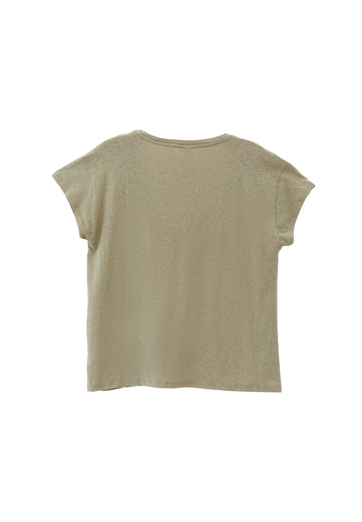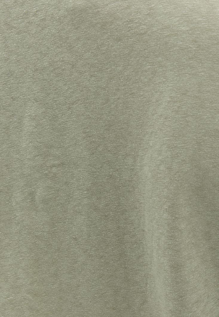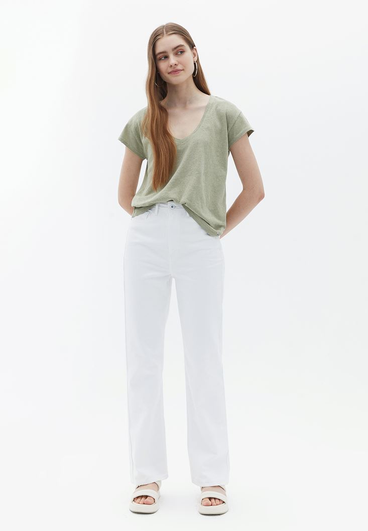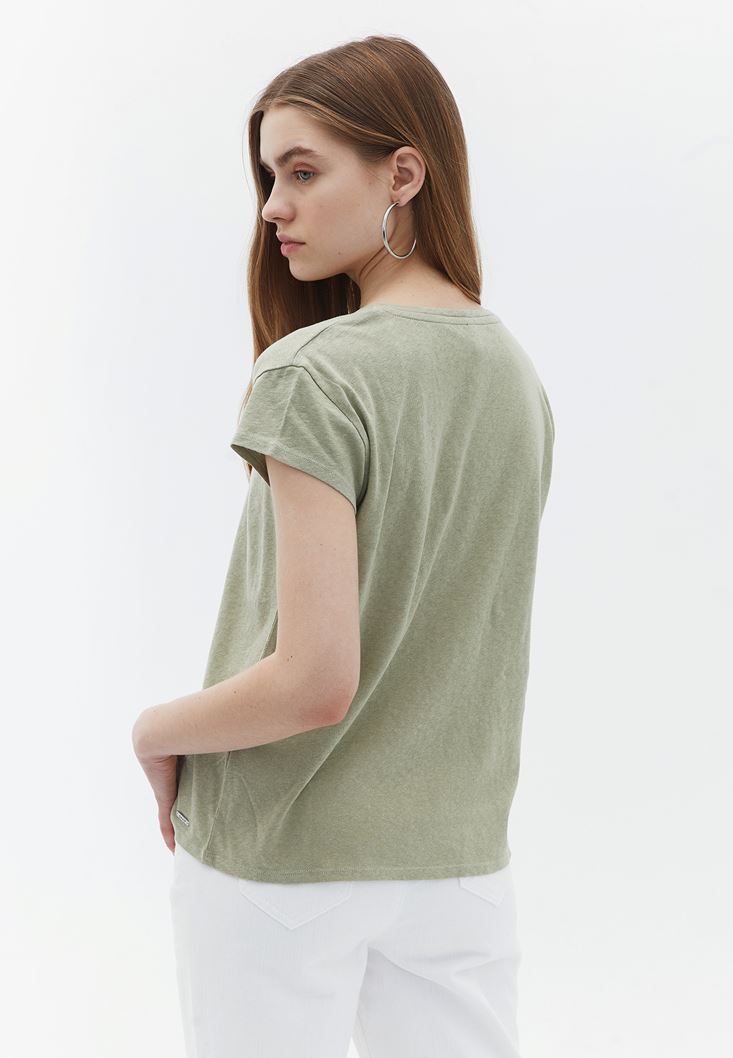 • Bayan Yeşil Keten Karışımlı V Yaka Tişört