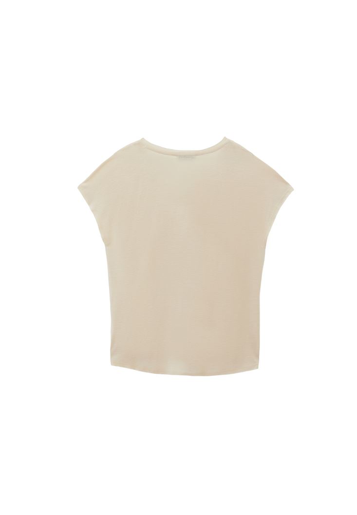 • Bayan Krem Keten Karışımlı V Yaka Tişört