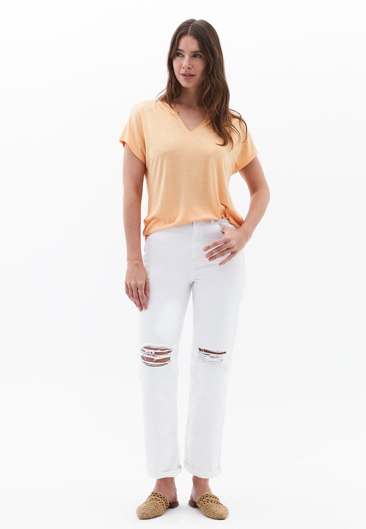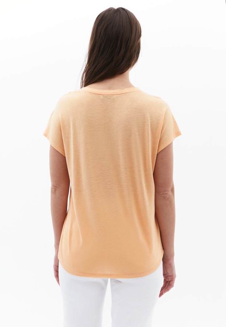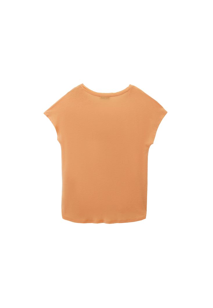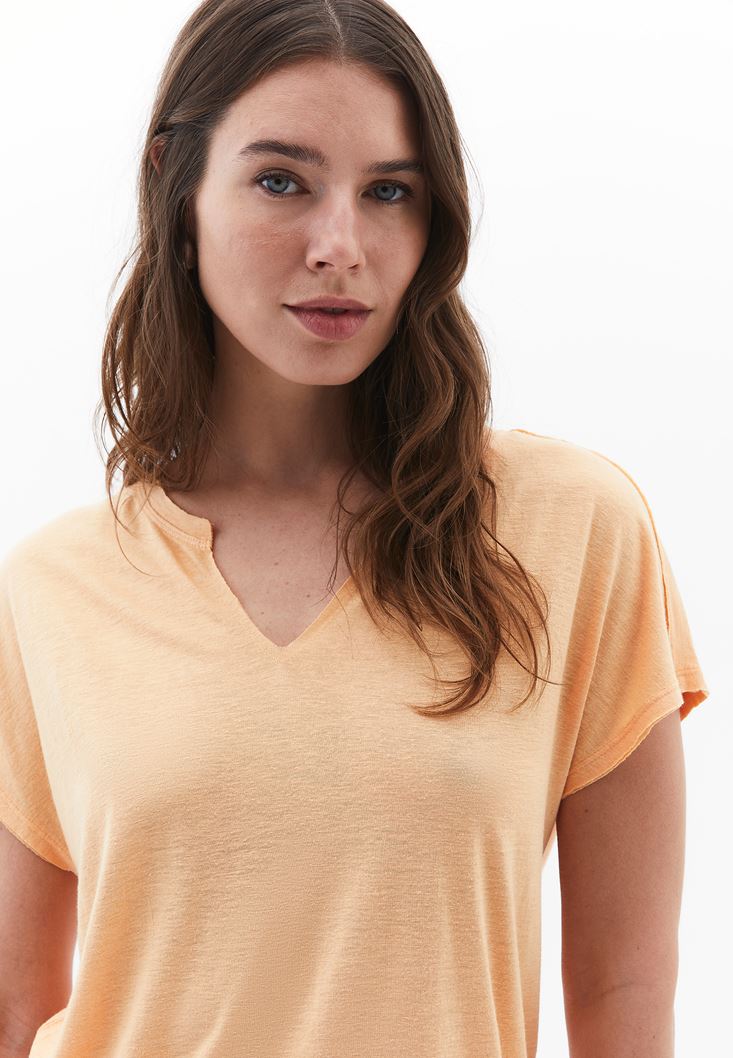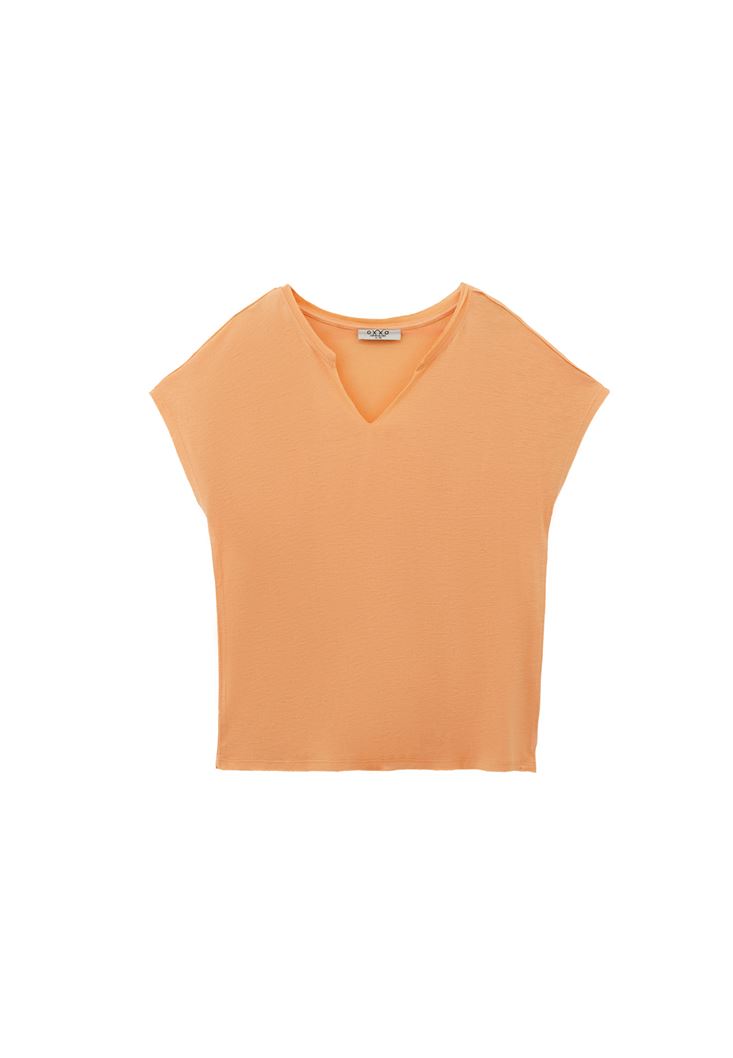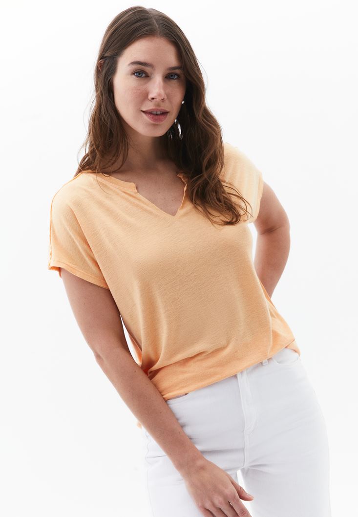 • Bayan Turuncu Keten Karışımlı V Yaka Tişört