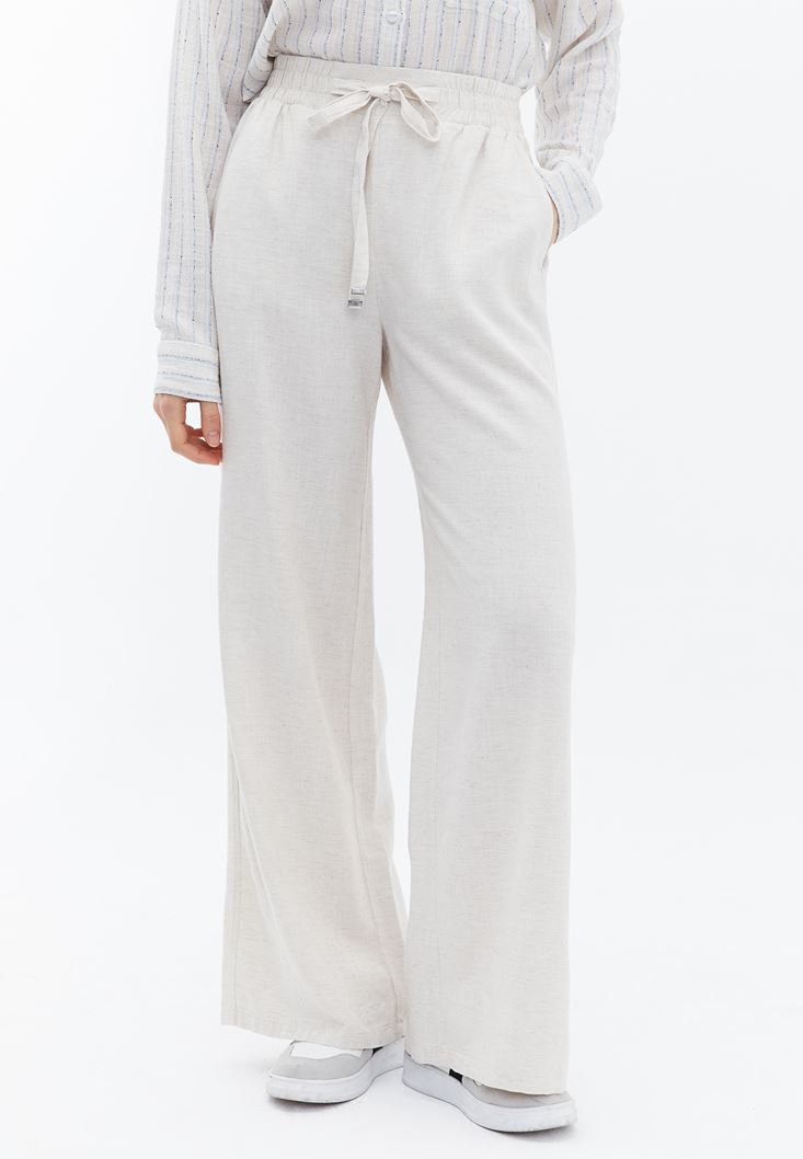 • Bayan Bej Keten Karışımlı Wide-Leg Pantolon