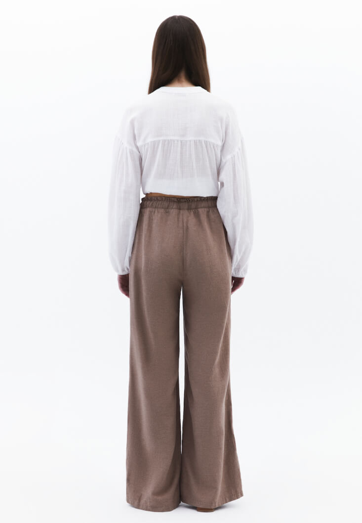 • Bayan Kahverengi Keten Karışımlı Wide-Leg Pantolon