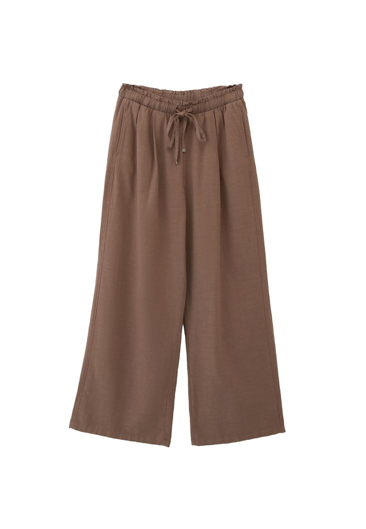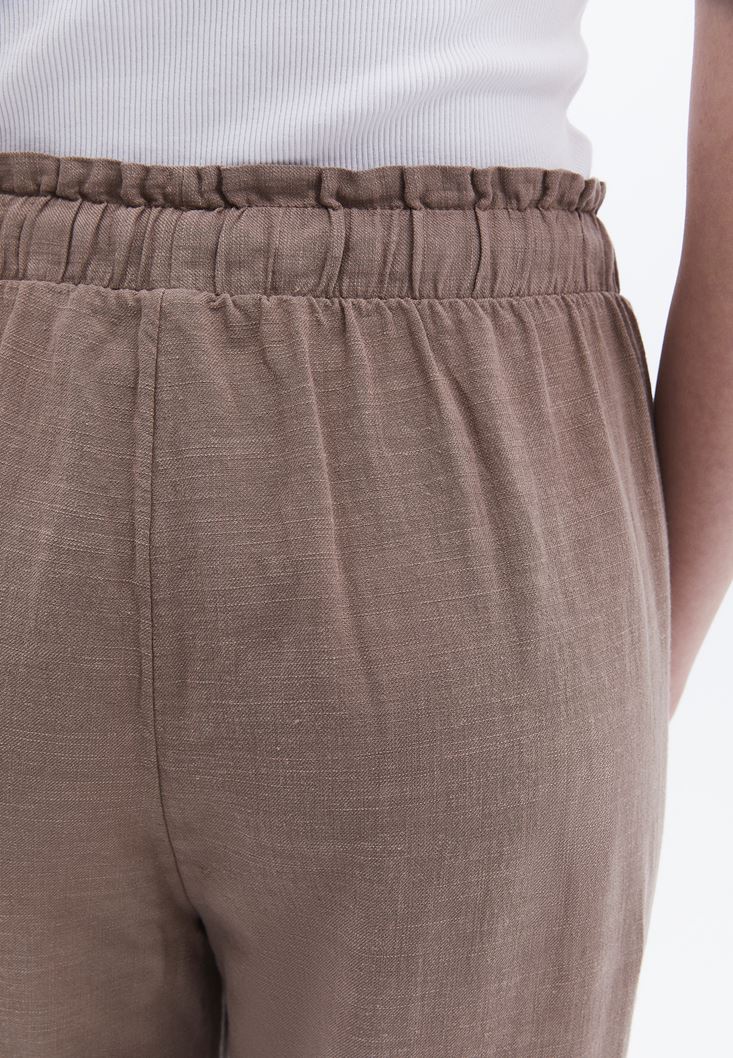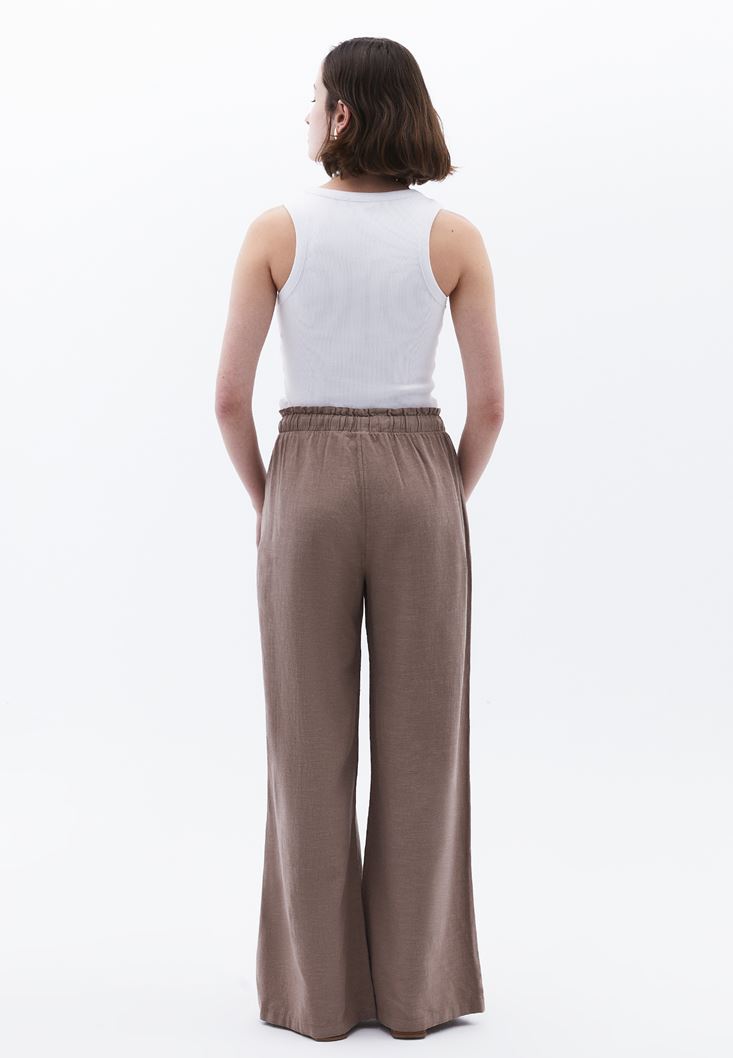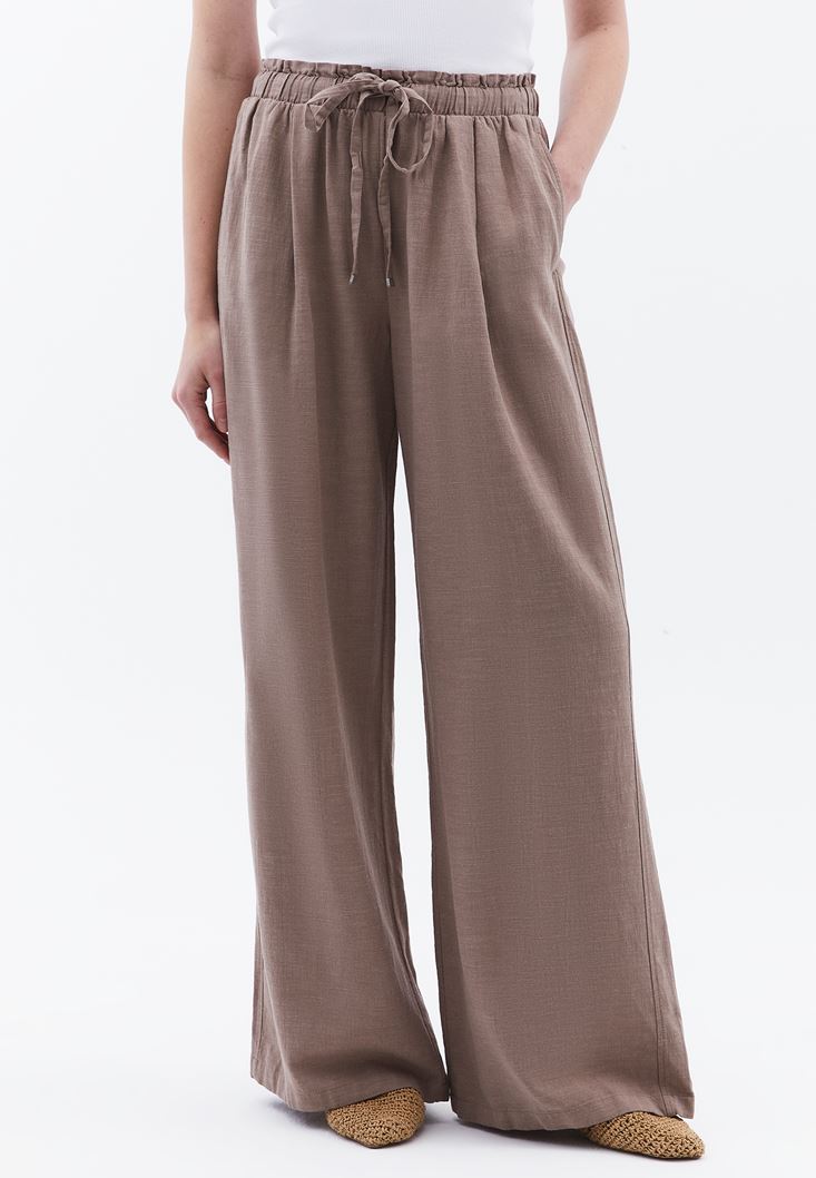 • Bayan Kahverengi Keten Karışımlı Wide-Leg Pantolon