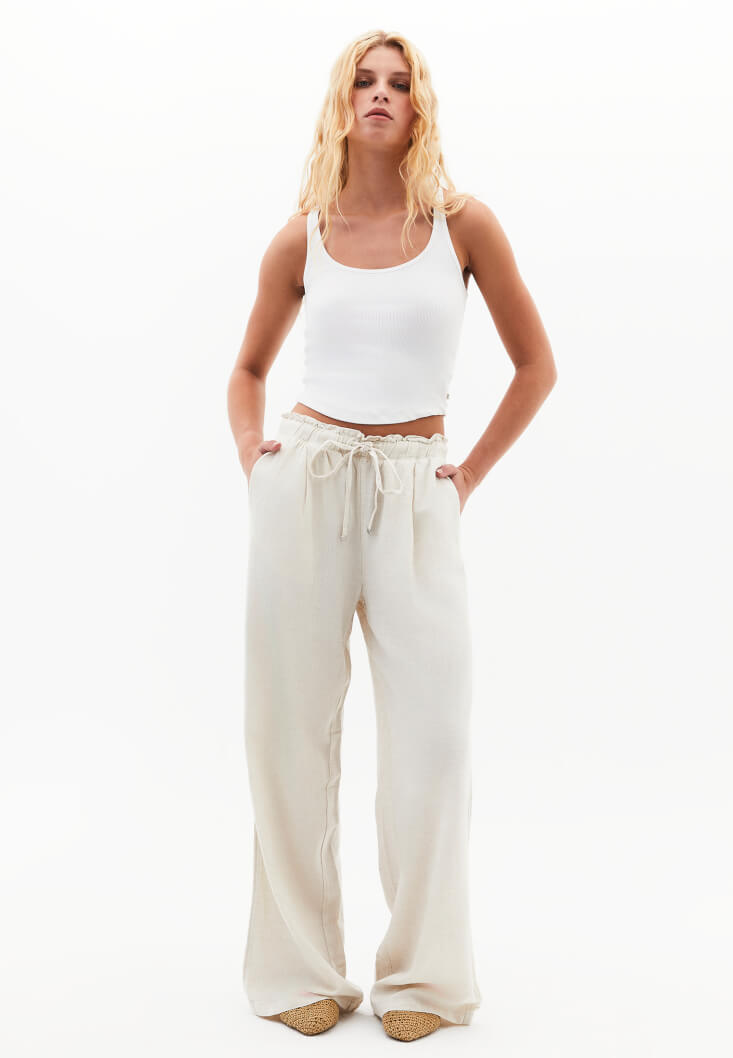 Bu pantolonla doğallığı stilinize taşıyın, her adımda hafifliğin keyfini çıkarın! 🌾🤍