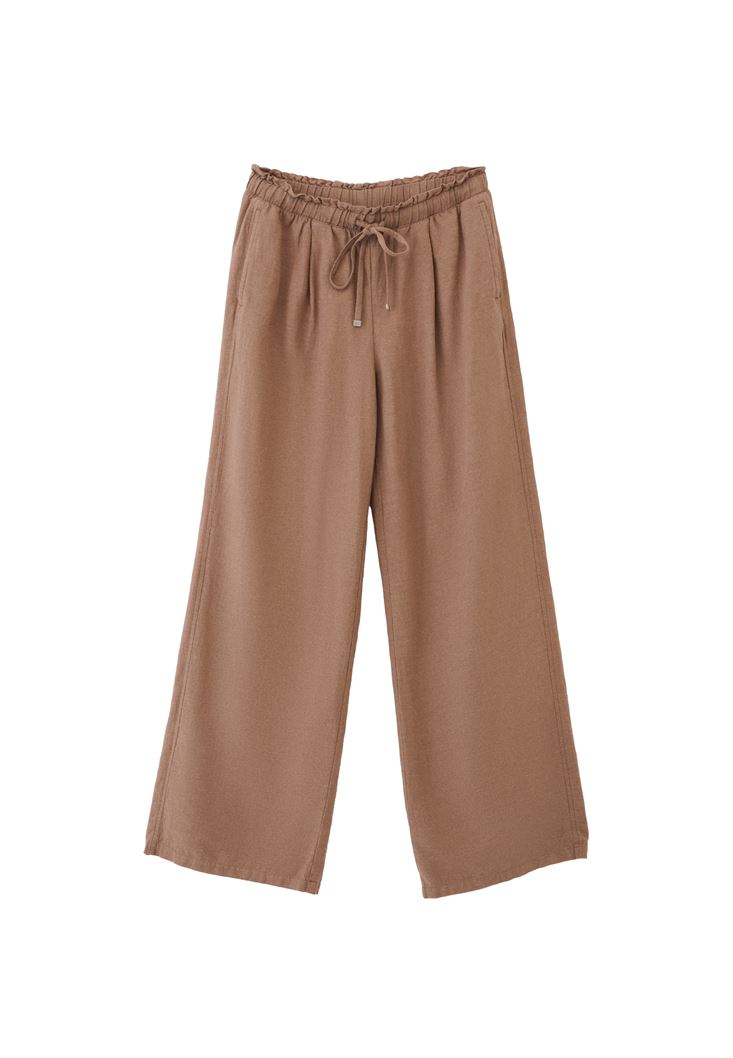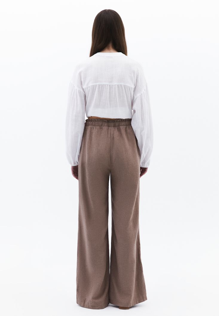 • Bayan Kahverengi Keten Karışımlı Wide-Leg Pantolon