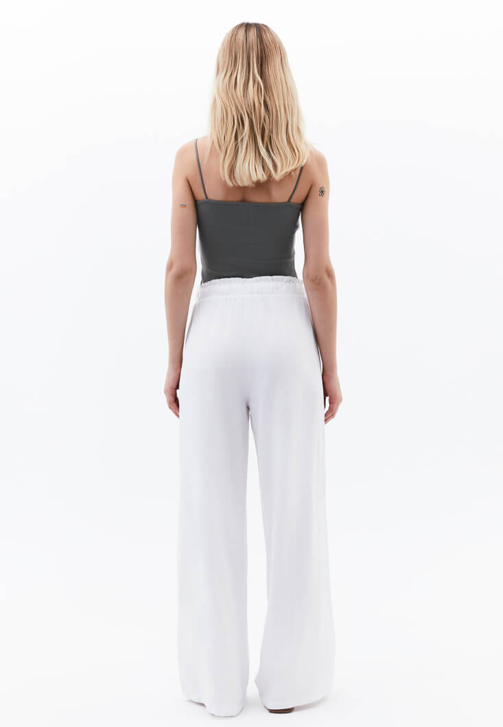 • Bayan Beyaz Keten Karışımlı Wide-Leg Pantolon