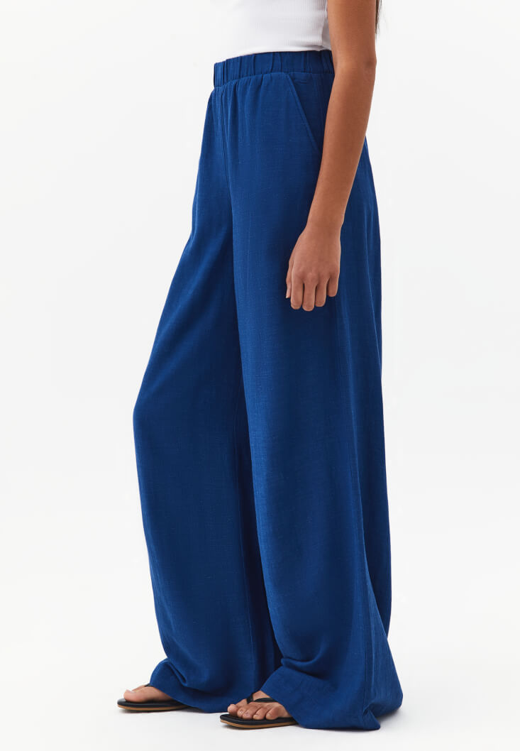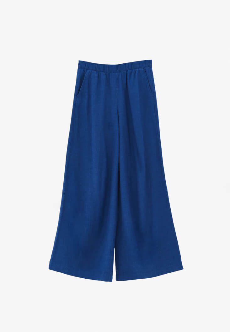 • Bayan Lacivert Keten Karışımlı Wide-Leg Pantolon