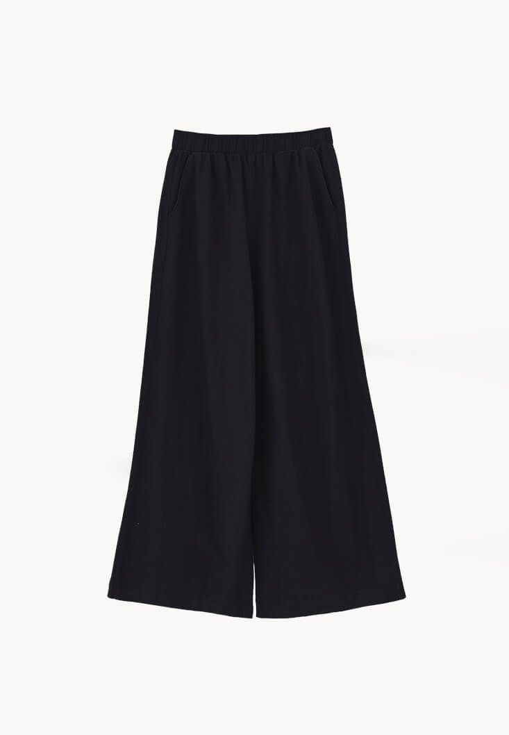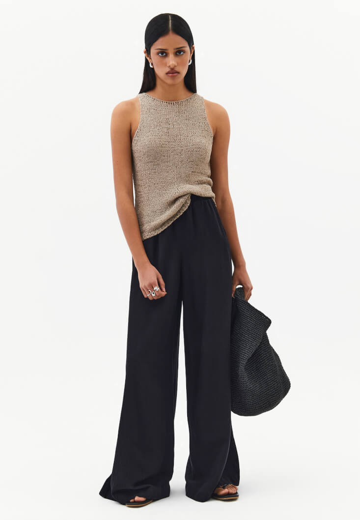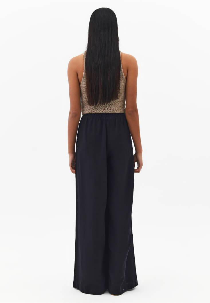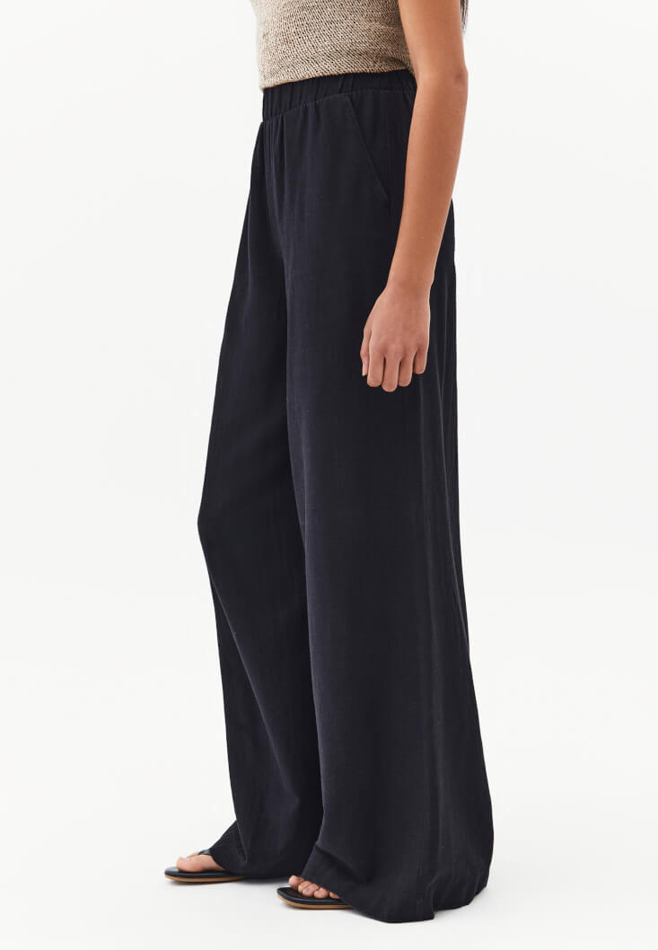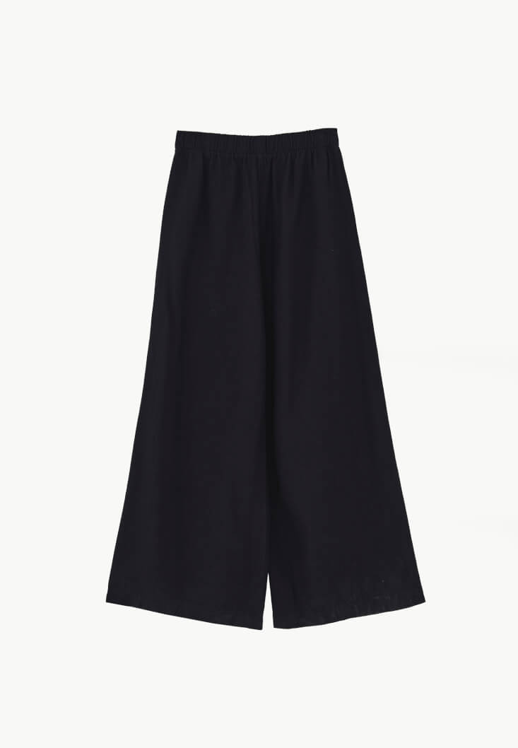 Siyah Keten Karışımlı Wide-Leg Pantolon