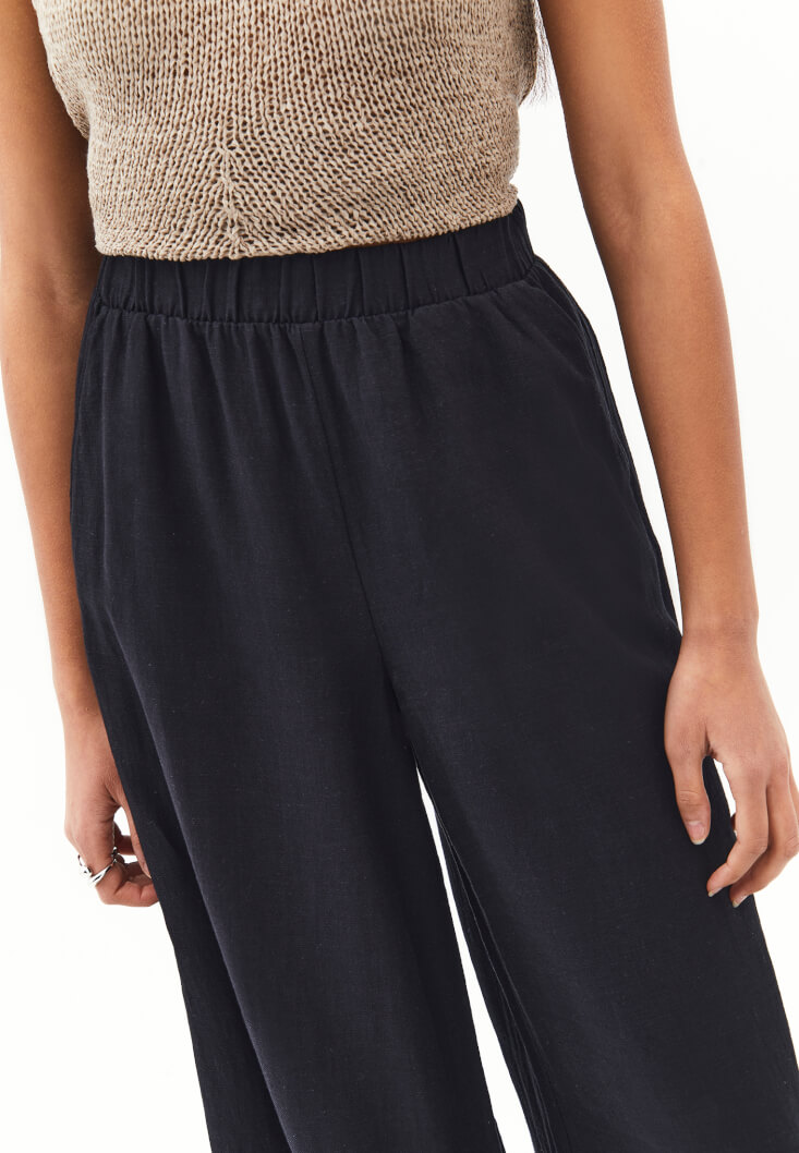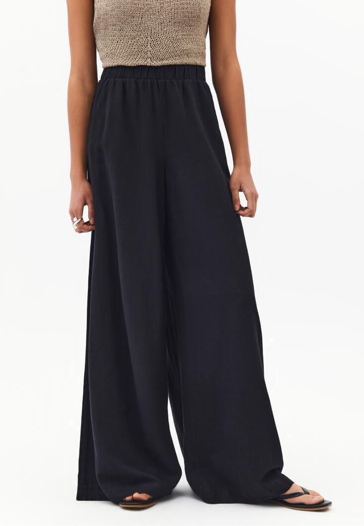 • Bayan Siyah Keten Karışımlı Wide-Leg Pantolon