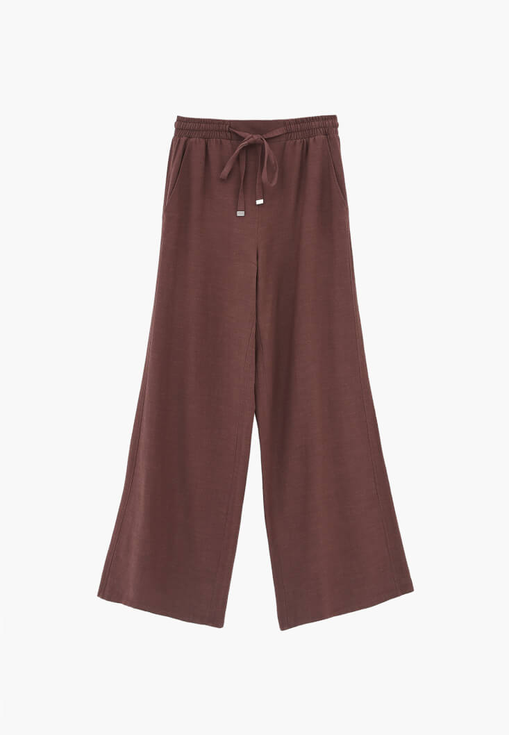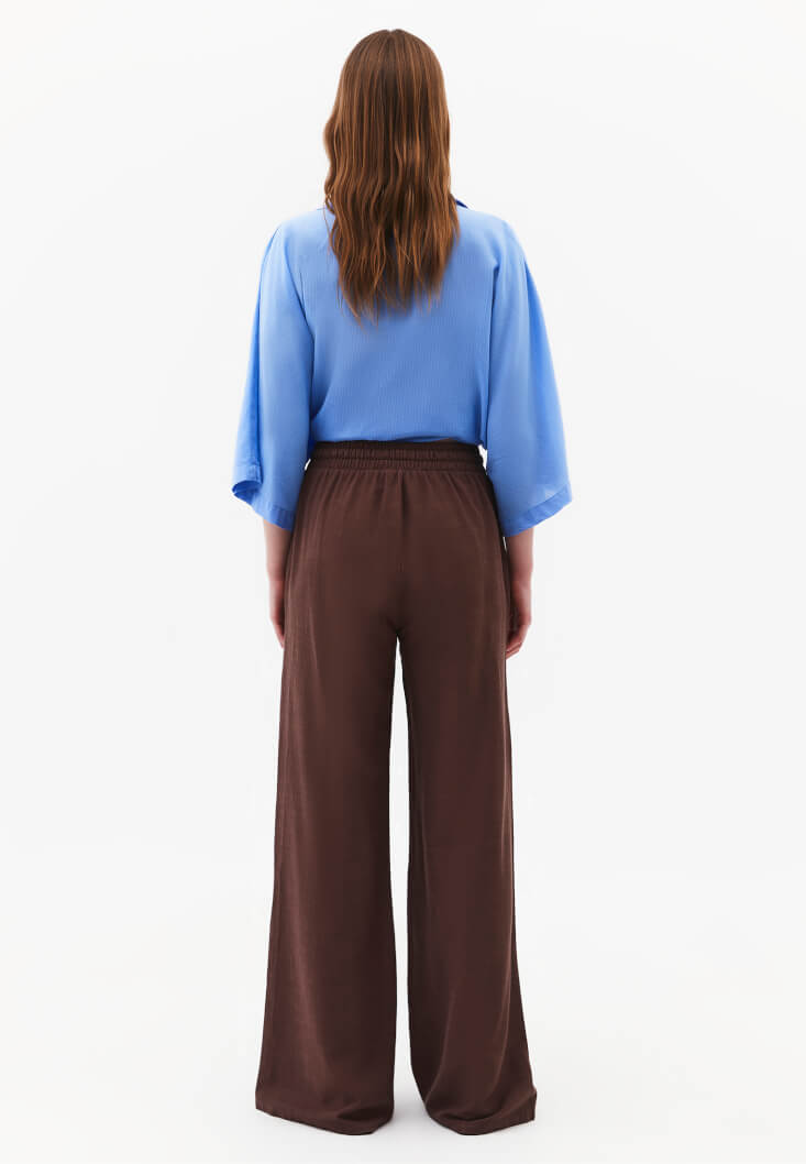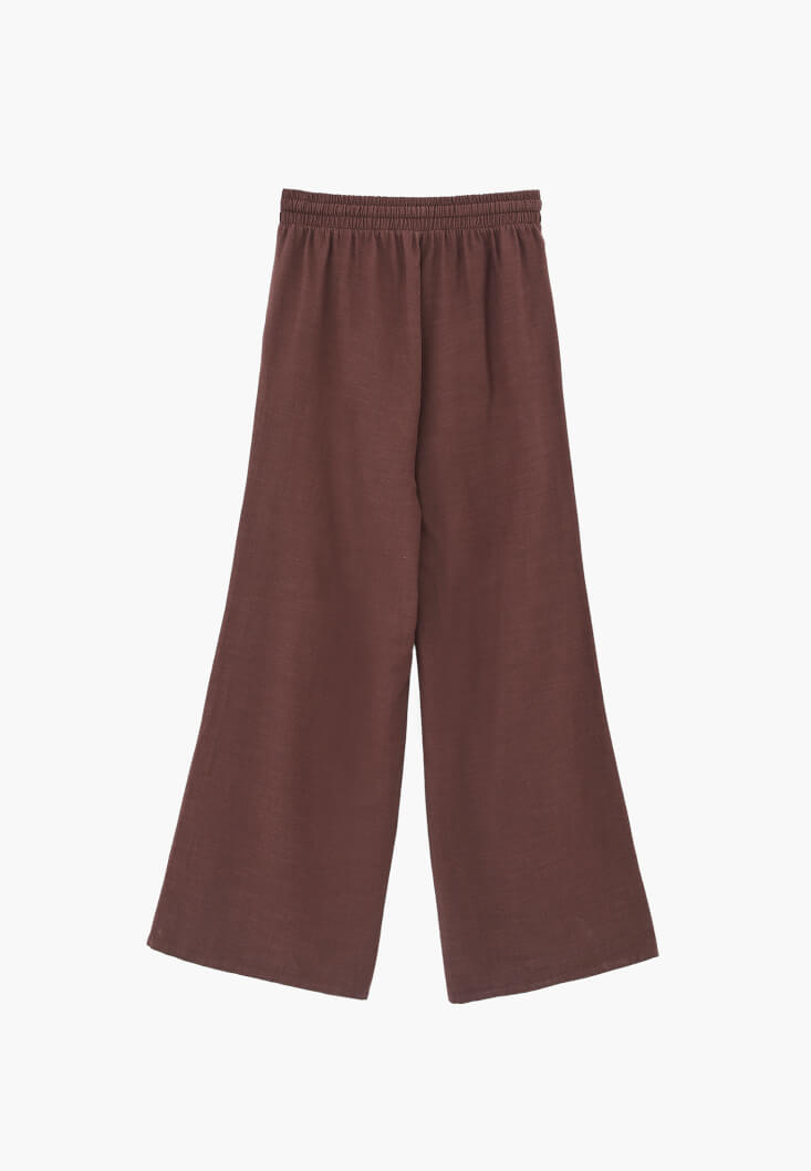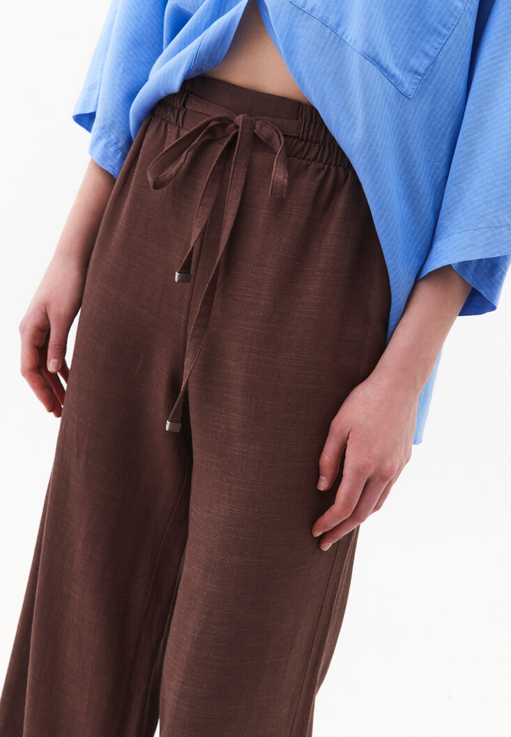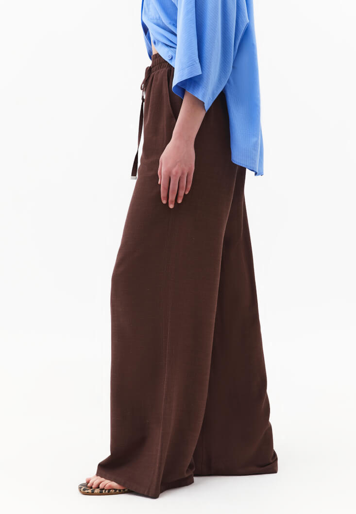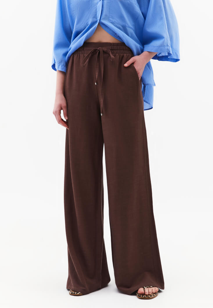 • Bayan Kahverengi Keten Karışımlı Wide-Leg Pantolon