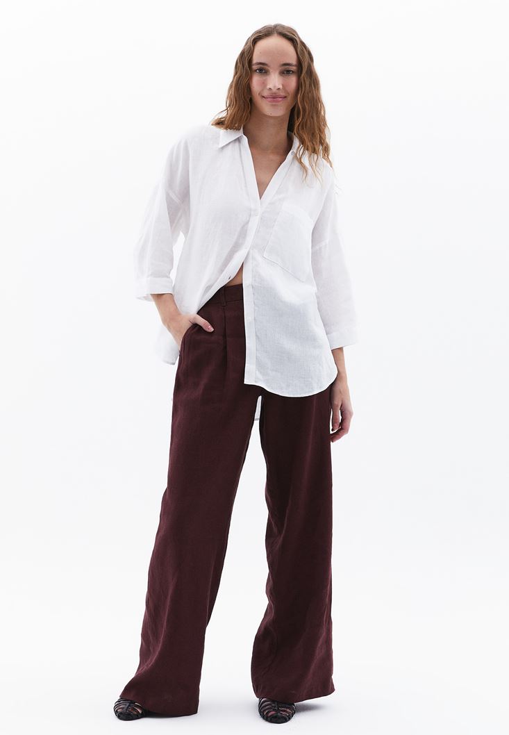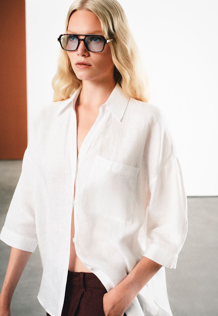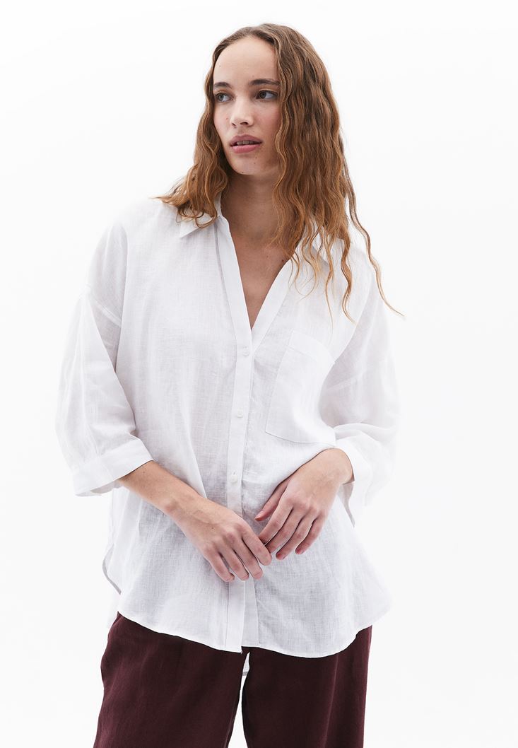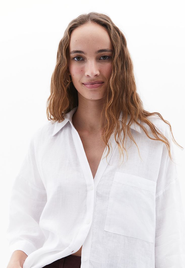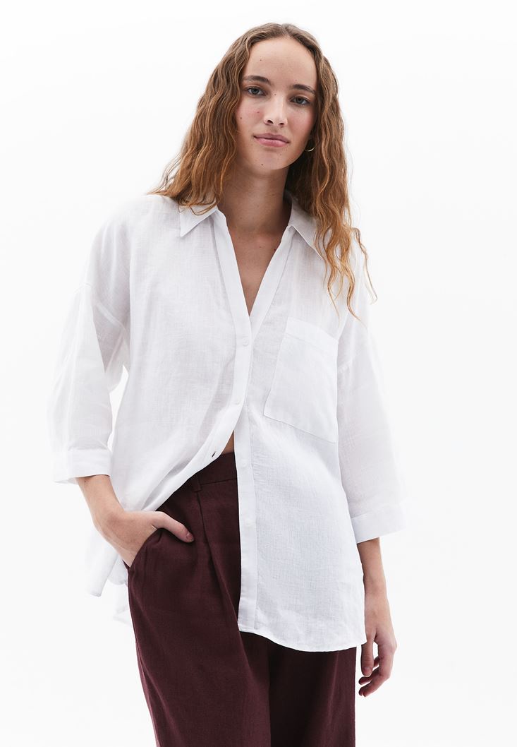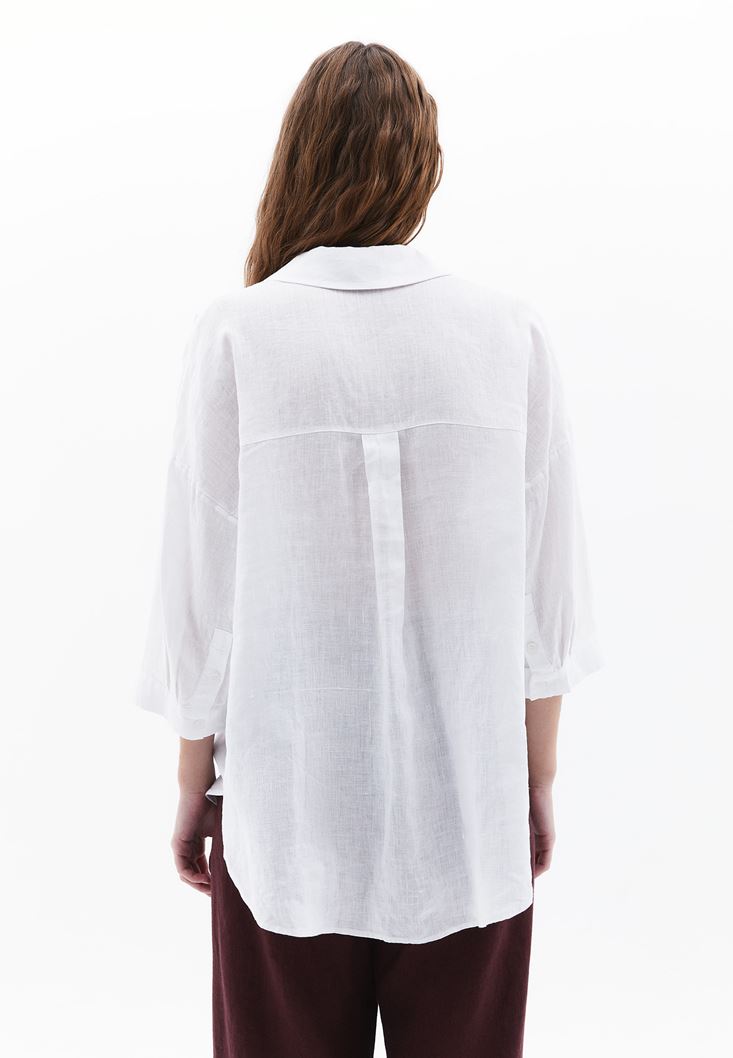 %100 keten içerikli doğal doku, bedenden uzak oversize fit, yarım kollu, tek cepli, önü kısa arkası uzun asimetrik fit, düğme kapamalı.