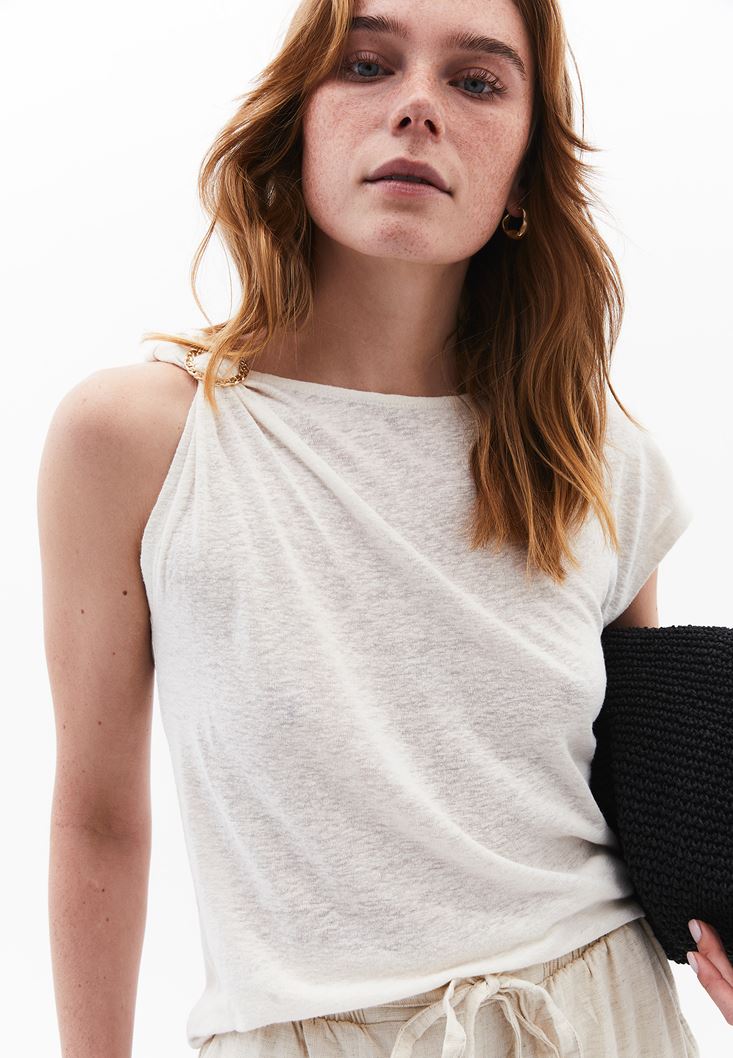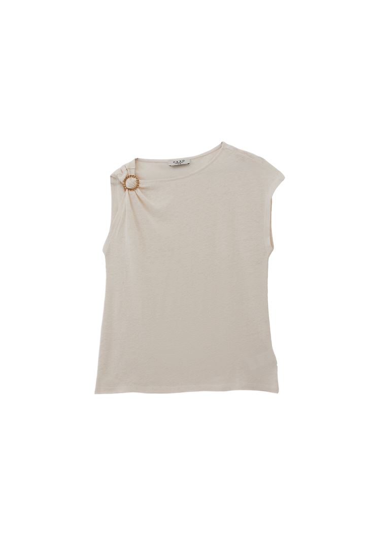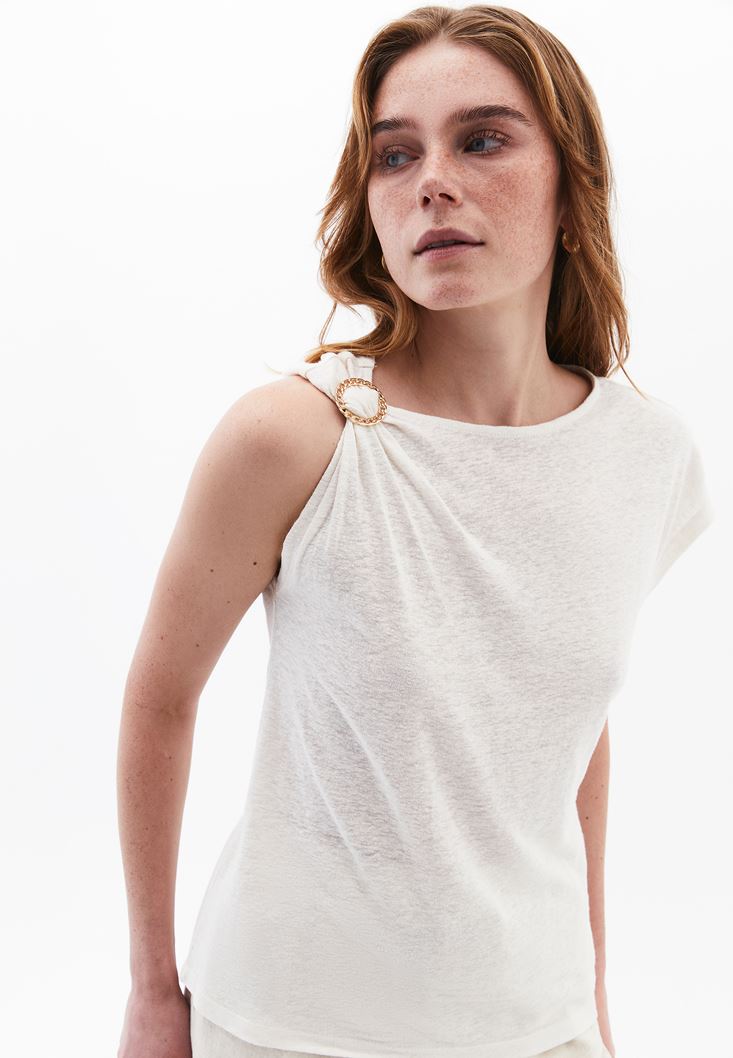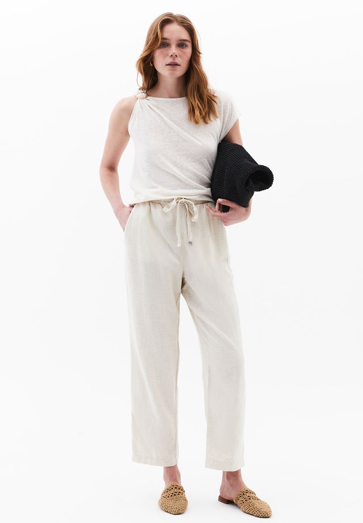 Keten Tokalı Tişört ve Keten Pantolon Kombini