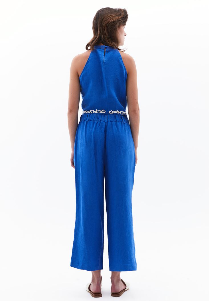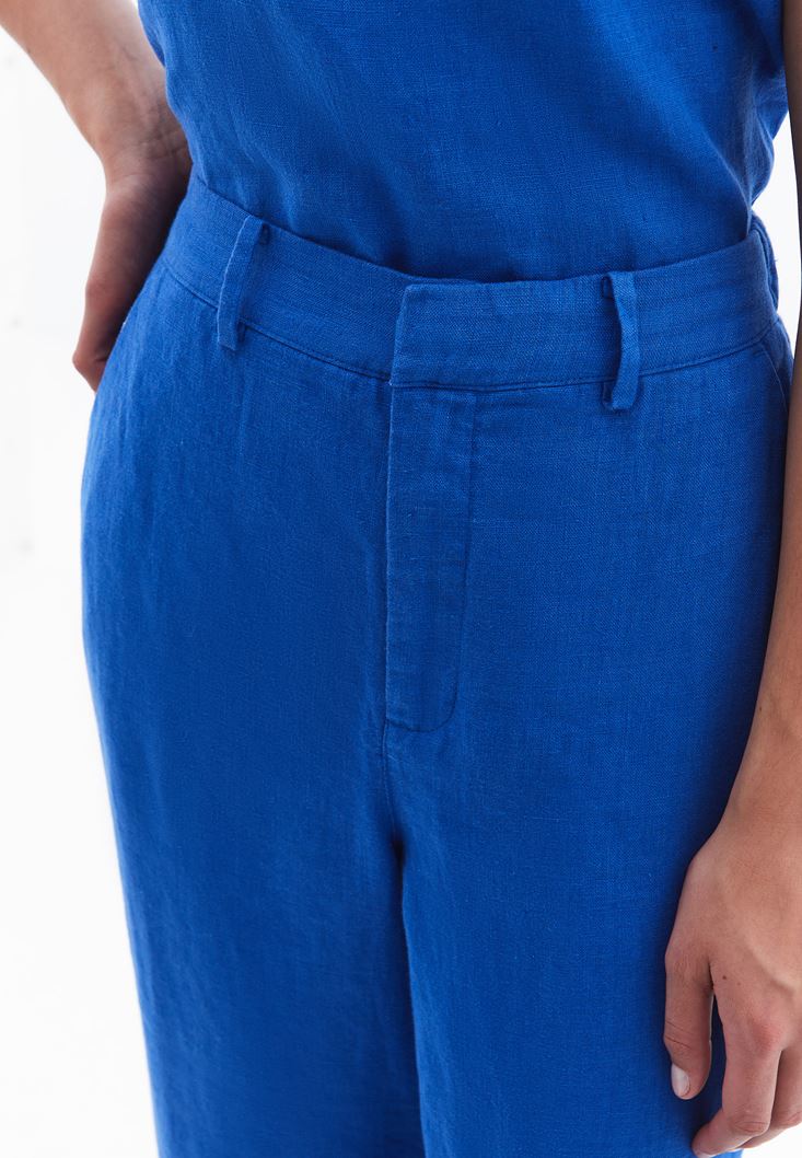 Mavi Keten Ultra Yüksek Bel Pantolon