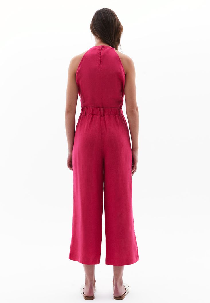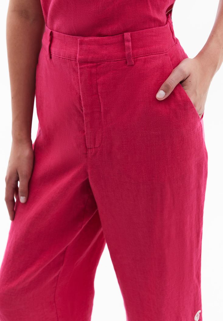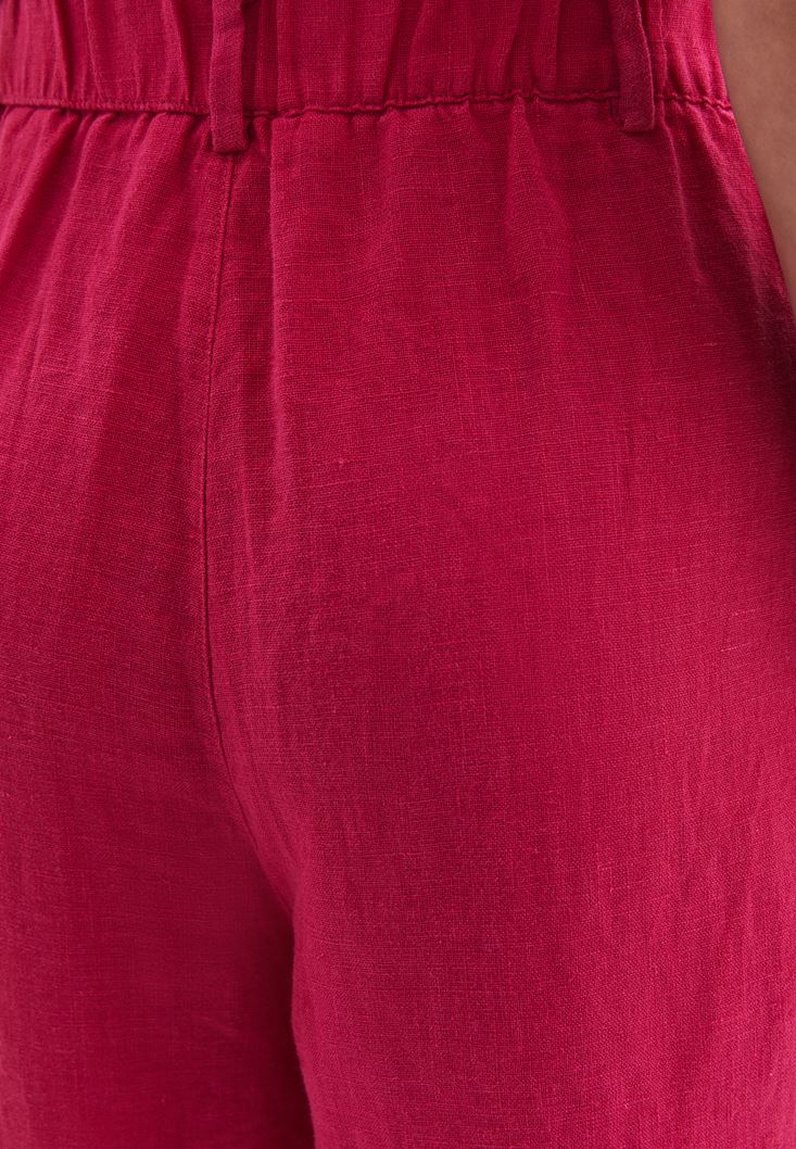 • Bayan Pembe Keten Ultra Yüksek Bel Pantolon