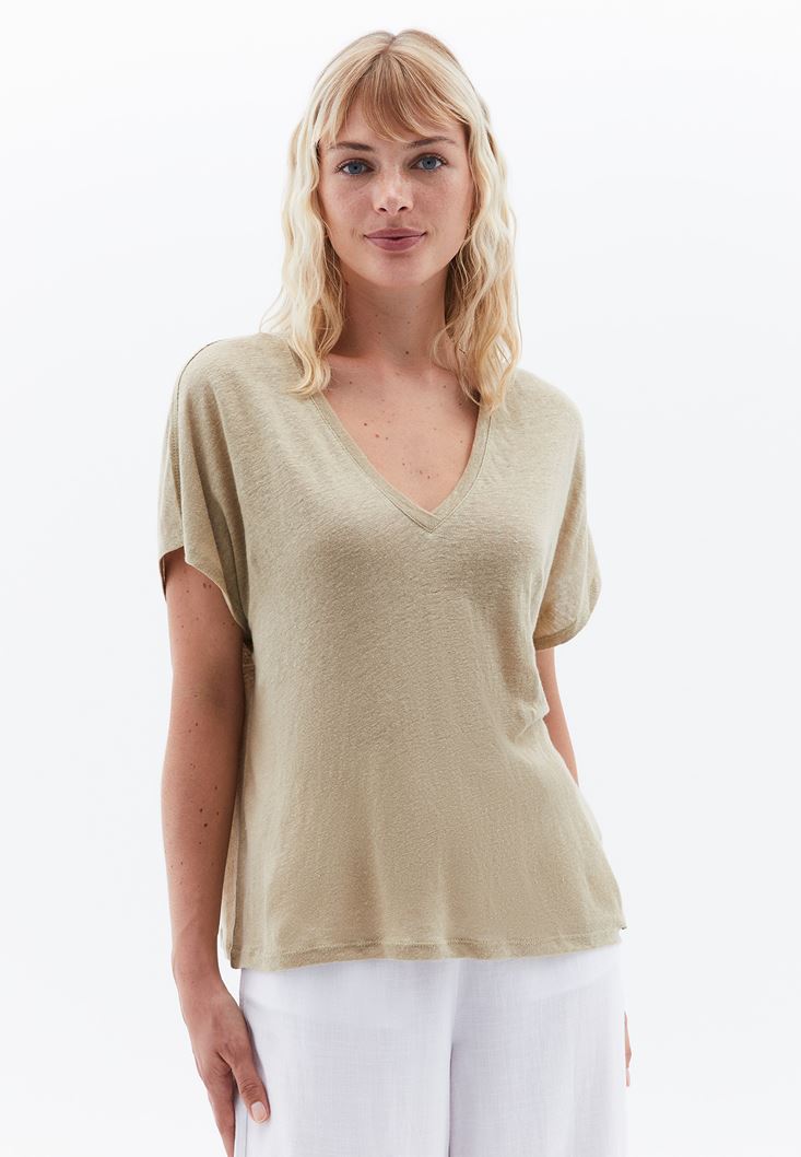 Keten V Yaka Tişört