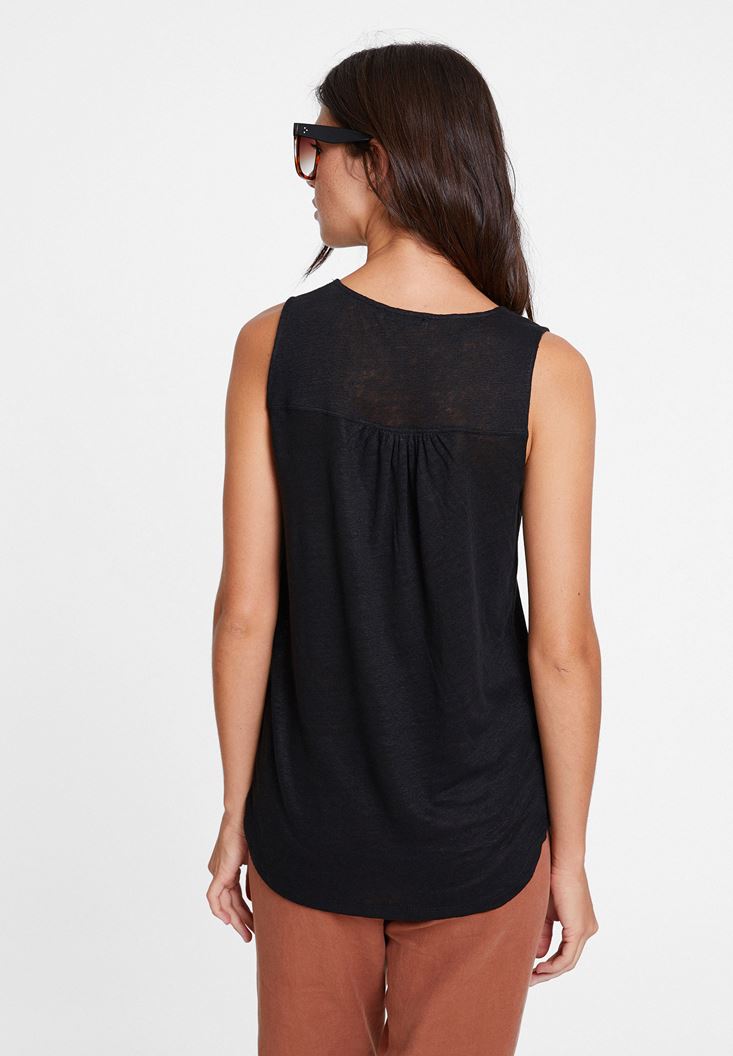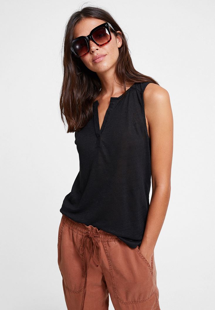 Siyah Keten V Yaka Tişört