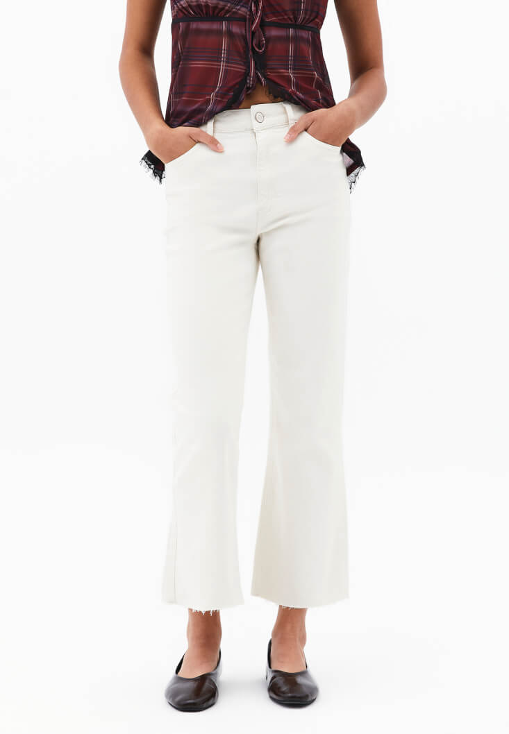 • Bayan Bej Kick Flare Denim Pantolon