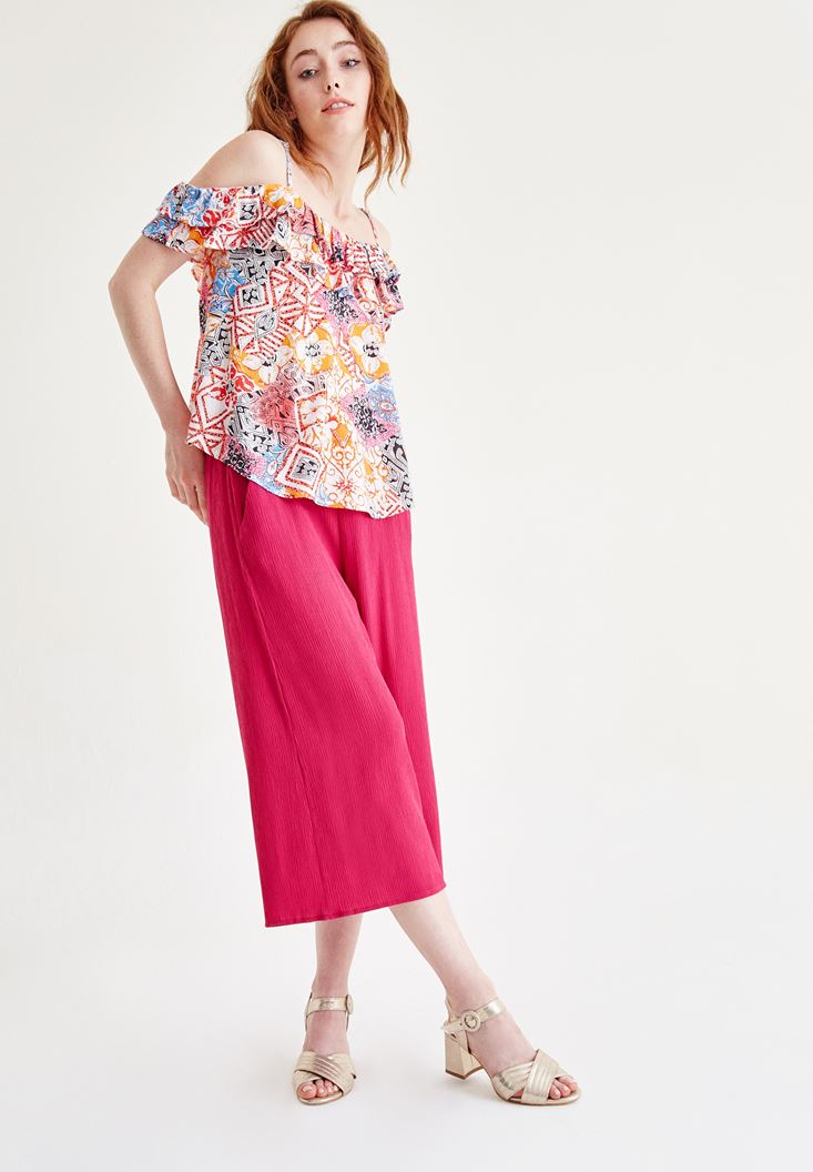 Zarif bilekleri açikta birakarak sik ve modern bir görünüm sunan kisa bol paça pantolonlar bu sezon da sokak modasinin vazgeçilmezleri arasinda. Feminen bir görünüm ile bohem tavri bir arada sunan bol pantolon, rahatligindan ödün vermeyen OXXO kadinlari için ideal parçalardan biri. Günlük kombinlerde kolayca giyilebilen ve her türlü üst giyim ürünü ile çabasiz bir siklik yakalayan pantolonu senenin trendi arkasi açik küçük topuklu ayakkabilar ile giyerek ofis kombinlerinizde degerlendirebilirsiniz. Kemer detayi ile hareket kazanan bol pantolonu spor kombinlerinizde ise sneaker modelleri ile tamamlayarak keyifli kombinler yaratabilirsiniz. Tarziniza hareket özgürlügü katan bol paça pantolon, yaz aylarinizin favori parçasi olmaya simdiden aday!