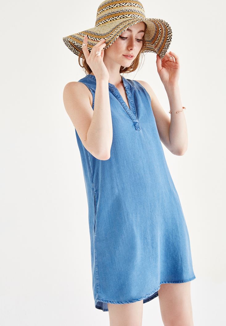 Denim kumasin tüm cazibesini barindiran kolsuz kisa denim elbise ile özgürlük ayaginiza geliyor! Bol kesimi, terletmeyen ve yumusak kumasiyla teninizde ipeksi bir dokunusa hazirsaniz, OXXO koleksiyonlarinin yildizlarindan olan kolsuz denim elbise modeli sizi bekliyor. Cepleri tasarima hareket katiyor ve hafif bollugu tüm hareketlerinizi özgürlestiriyor. Sokak modasini derinlestiren ve sikligi sadelikle özdeslestiren kolsuz kisa denim elbise modelini rengarenk aksesuarlarla kombinleyebilirsiniz. Yasam enerjinizi yansitan seçimlerle bu elbise içerisinde renkli kisiliginizi sergilemeniz için çok firsatiniz olacak! Spor ayakkabi, sneaker ve sandaletlerle yüzde yüz uyum saglayan kolsuz kisa denim elbise seçtiginiz çantalara göre isiltisini da farklilastiriyor. Dogalliginizdan ödün vermeden kendinizi tanimlamanin yolunu ariyorsaniz kolsuz kisa denim elbise modelinin avantajlarini yasayabilirsiniz.