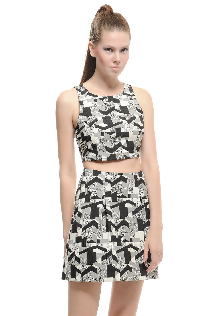 • Bayan Çok Renkli Kısa Jakarlı Bluz