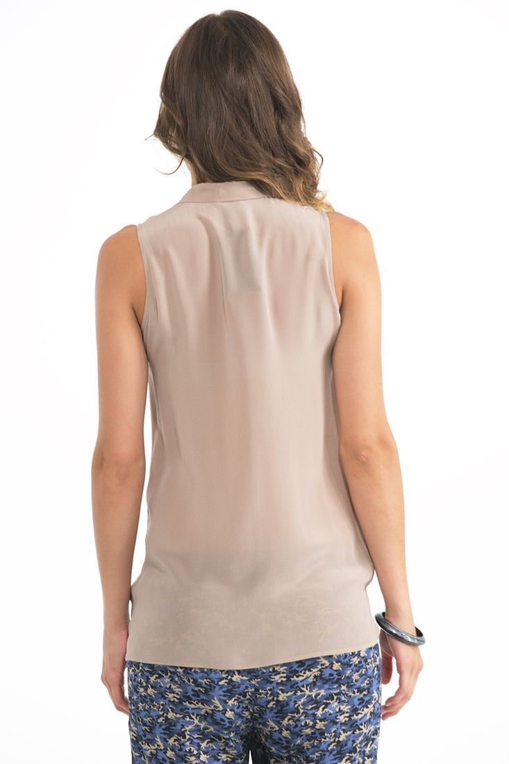 • Bayan Bej Kısa Kollu İpek Gömlek