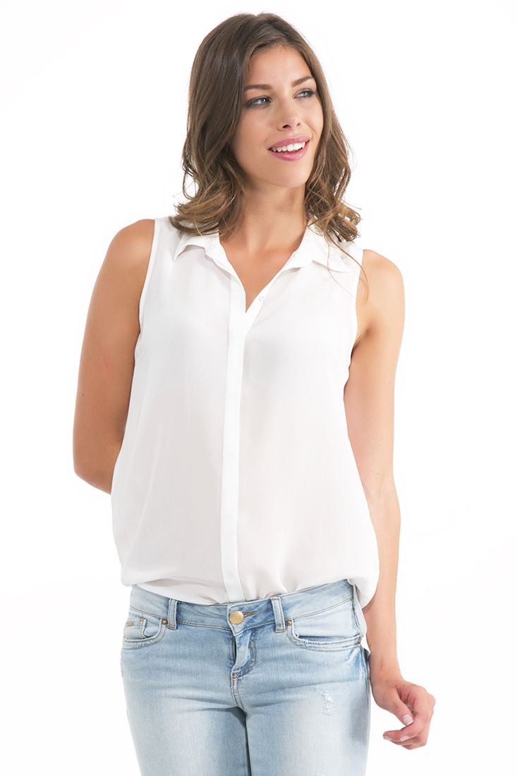 Kolsuz, gizli düğmeli, ipek gömlek.