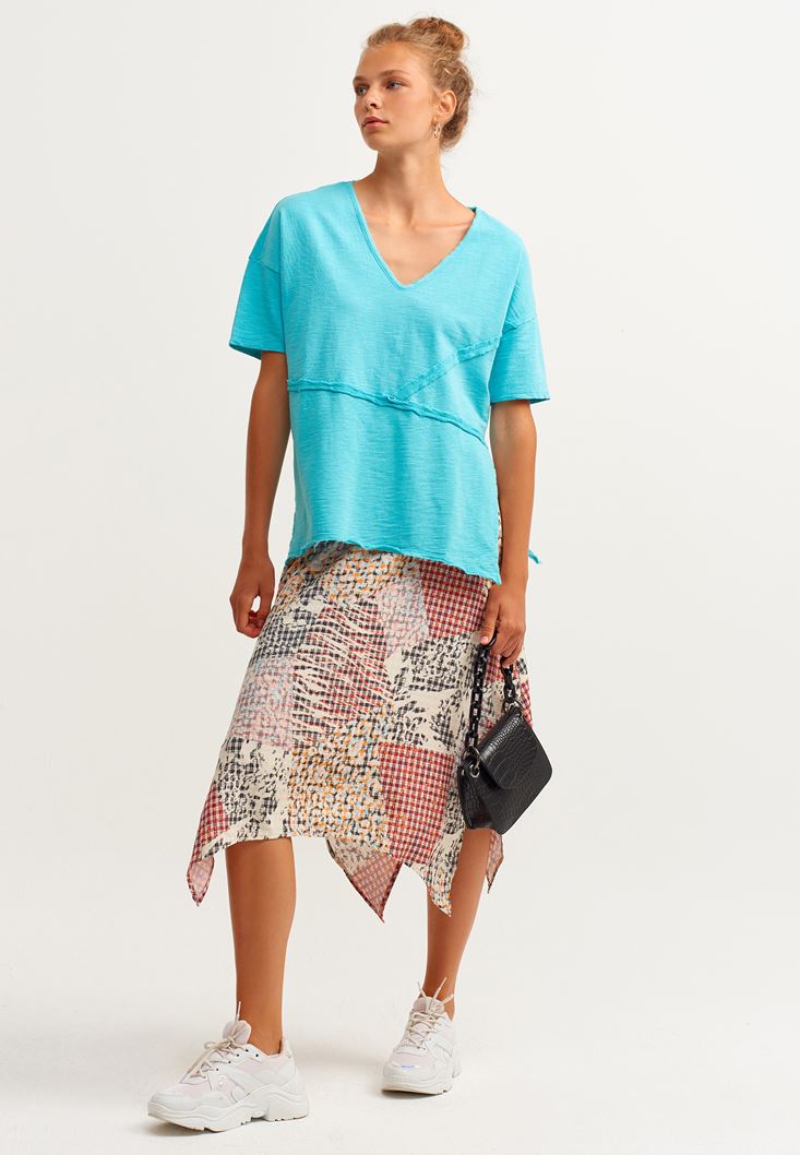 Mavi Kısa Kollu Oversize Sweatshirt