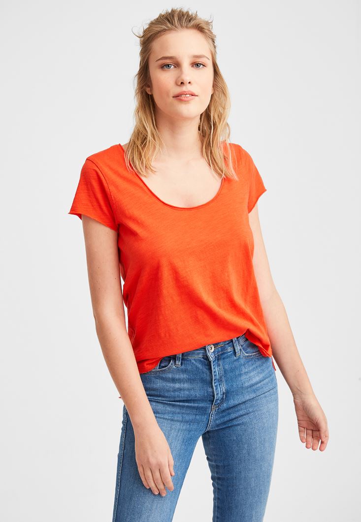 • Bayan Kırmızı Kısa Kollu U Yaka Tişört