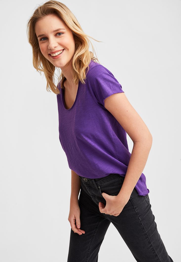 • Bayan Mor Kısa Kollu U Yaka Tişört
