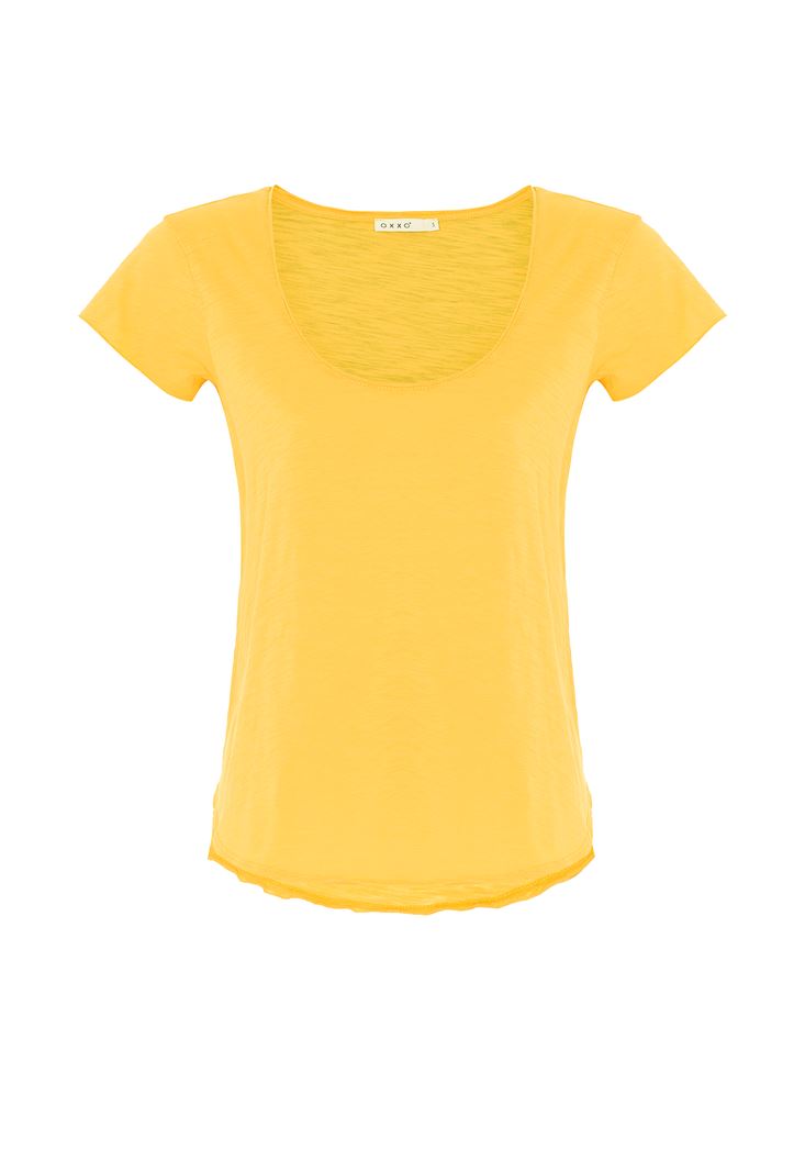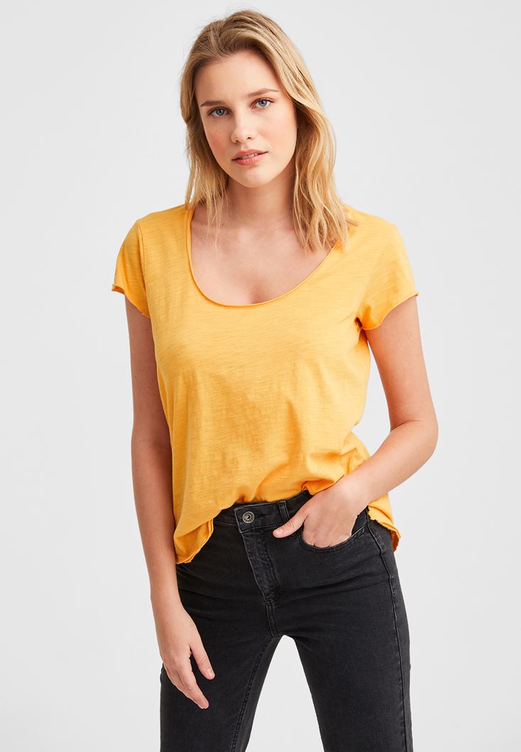 • Bayan Sarı Kısa Kollu U Yaka Tişört
