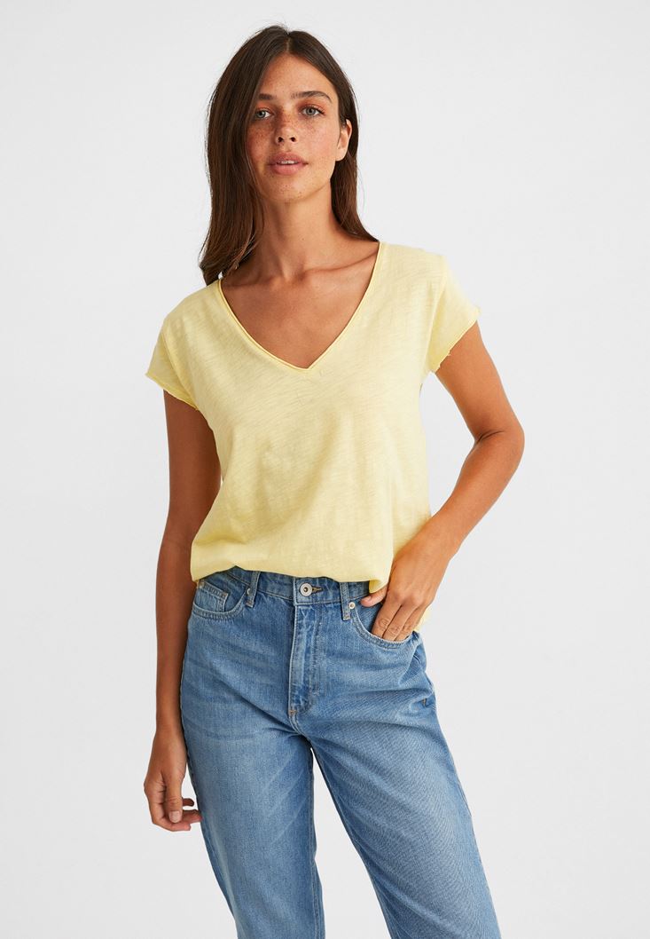 • Bayan Sarı Kısa Kollu V Yaka Tişört