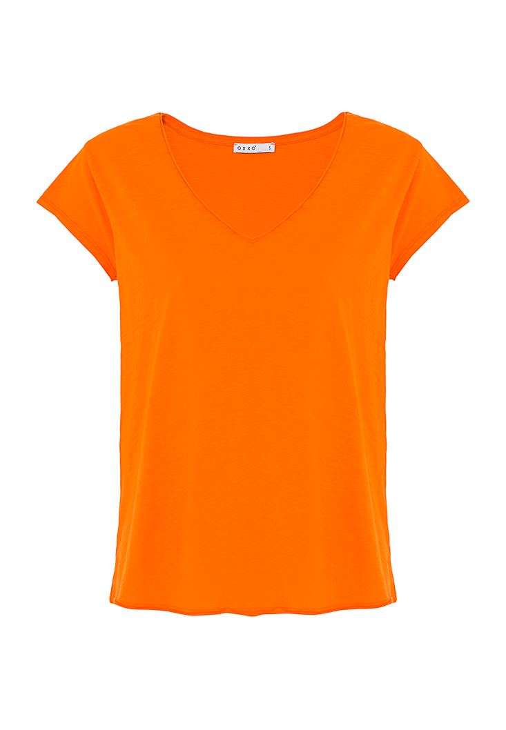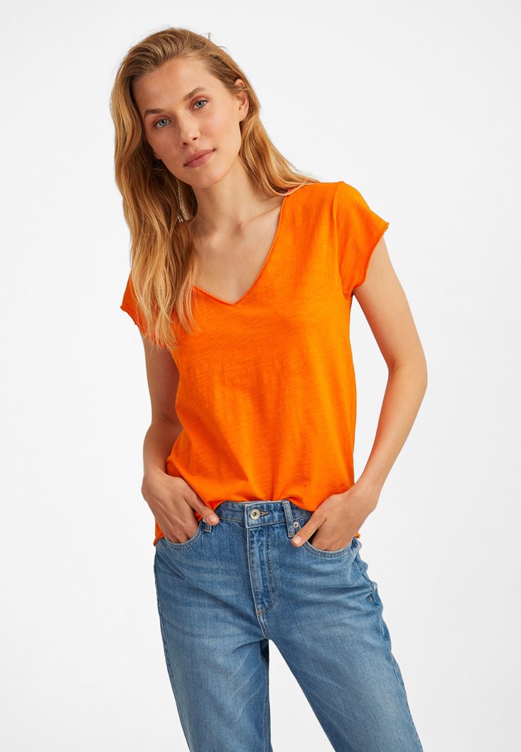 • Bayan Turuncu Kısa Kollu V Yaka Tişört
