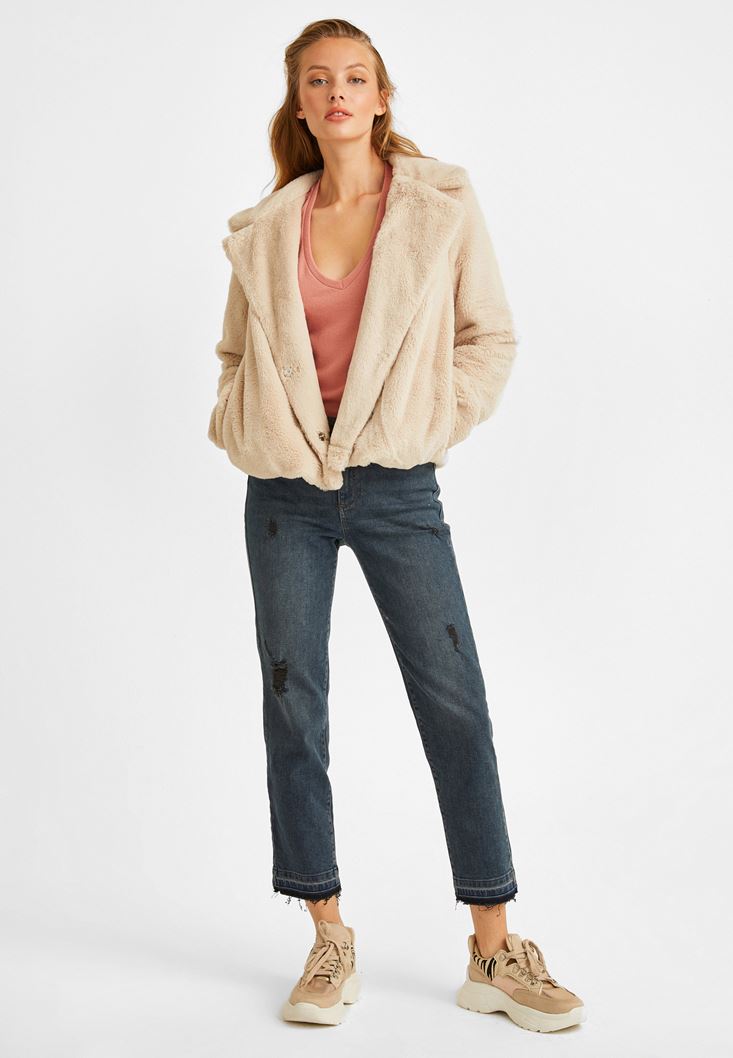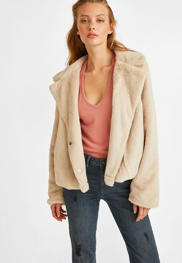 Kısa Kürk Ceket modeli, sonbahar ve kış mevsimleri için ideal kullanım sunan dokusu ve yumuşaklığıyla sizi zarif bir şekilde sarıyor. Geniş yakaları ve crop kesimiyle karşınıza çıkan kadın kürk ceket modeli, renginden gelen canlılık ile sizlerle buluşuyor. kadın kısa topuklu bot modelleri ile yaptığınız mükemmel kombinlere havalı bir görünüm katan Oxxo kürk ceket modeli, mutlaka denemeniz gereken kadın giyim tasarımları arasında yerini alıyor. Kadın kısa kürk ceket modeli; skinny jean veya boru paça pantolon modelleri ile birleştiğinde tarzınıza en yüksek seviyede şıklık katıyor. Oxxo’nun iddialı ve çarpıcı görünümlere sahip olan ceket modelleri ile gittiğiniz her yerde tarzınızı ön plana çıkarabilirsiniz.
