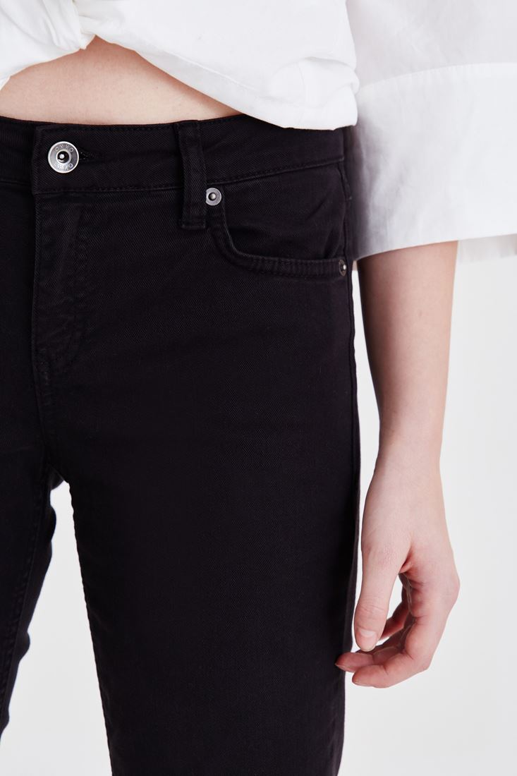 • Bayan Siyah Kısa Paça Boyfriend Pantolon
