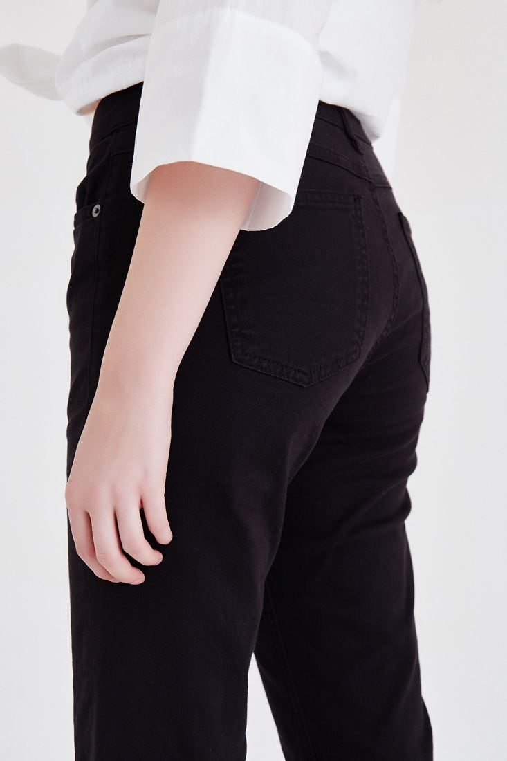 Siyah Kısa Paça Boyfriend Pantolon