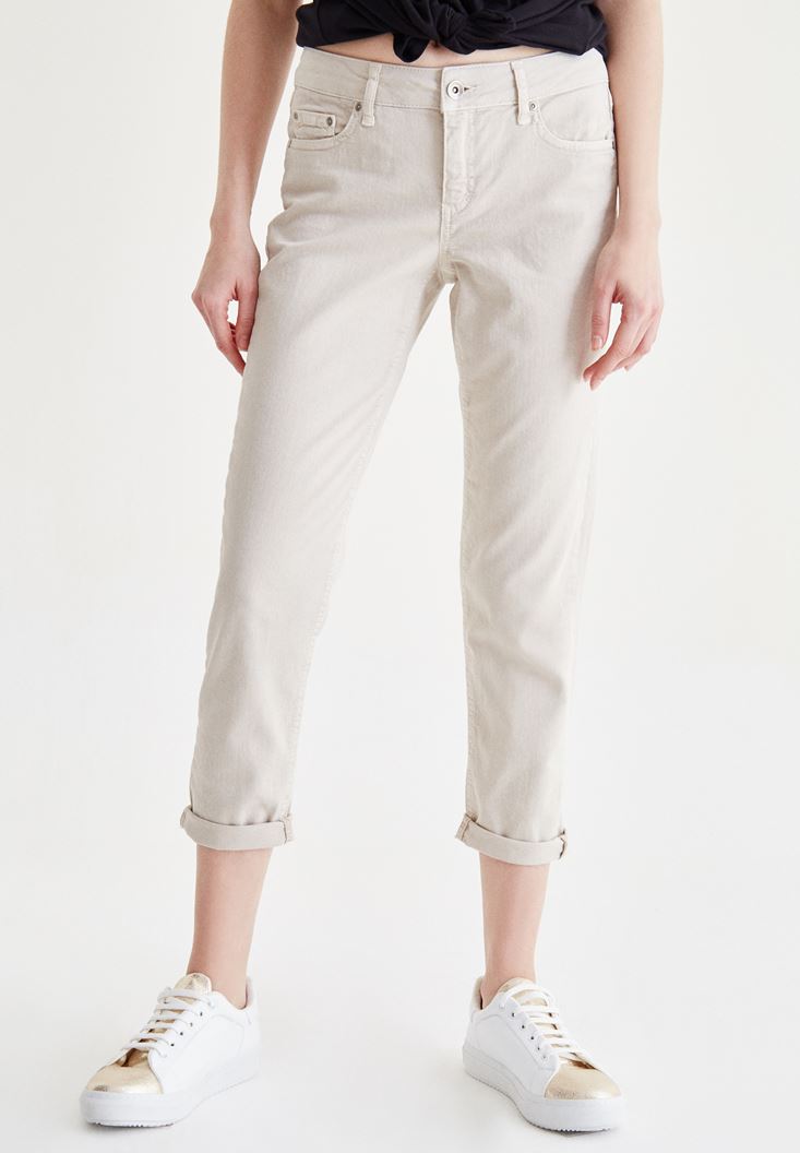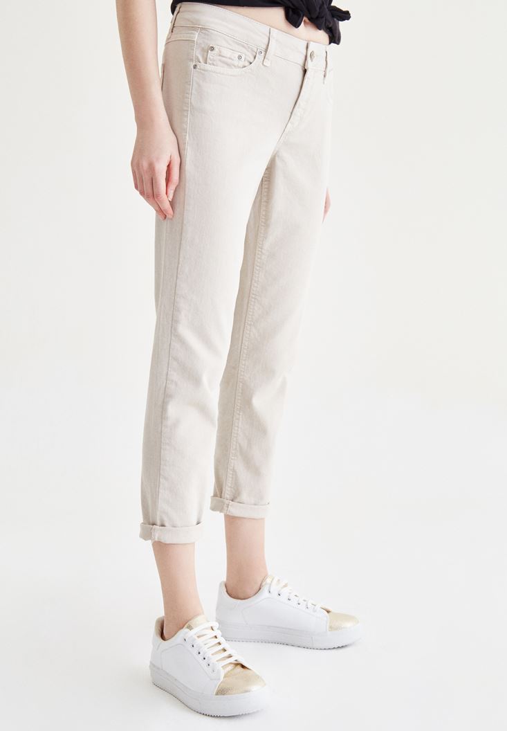 • Bayan Krem Kısa Paça Slim Boyfriend Pantolon